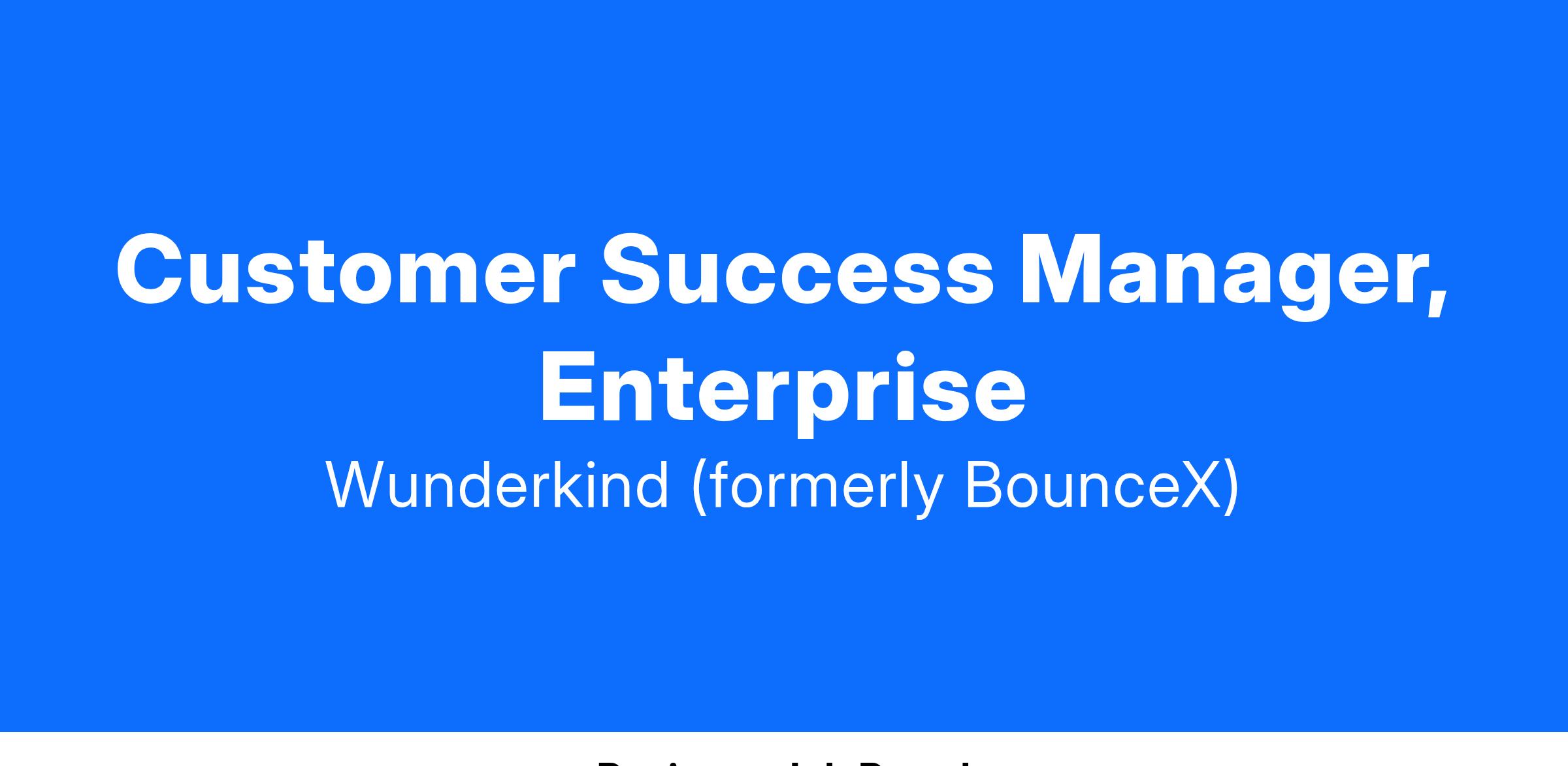 The Customer Success Manager (CSM) partners with Wunderkind’s largest enterprise clients to drive exceptional outcomes on our Autonomous Marketing Platform. This role is pivotal in executing high-impact campaigns, managing complex projects, and collaborating with stakeholders to ensure seamless tactical execution and measurable results. Success metrics for this role include Gross & Net ARR retention, platform adoption, client performance, and NPS.