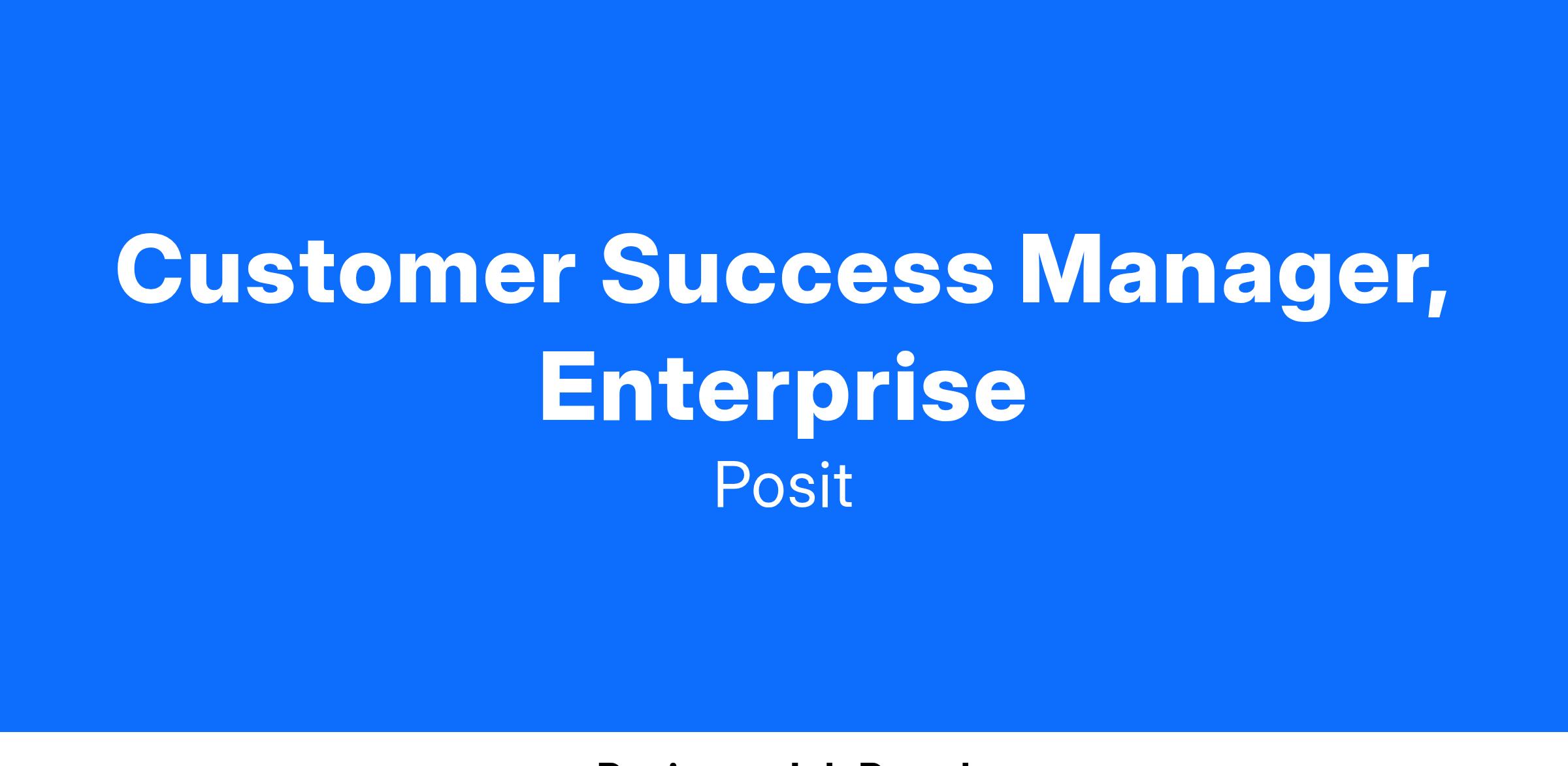 - Be seen as a trusted business-advisor and Posit expert, making a significant impact on the Customer Success team