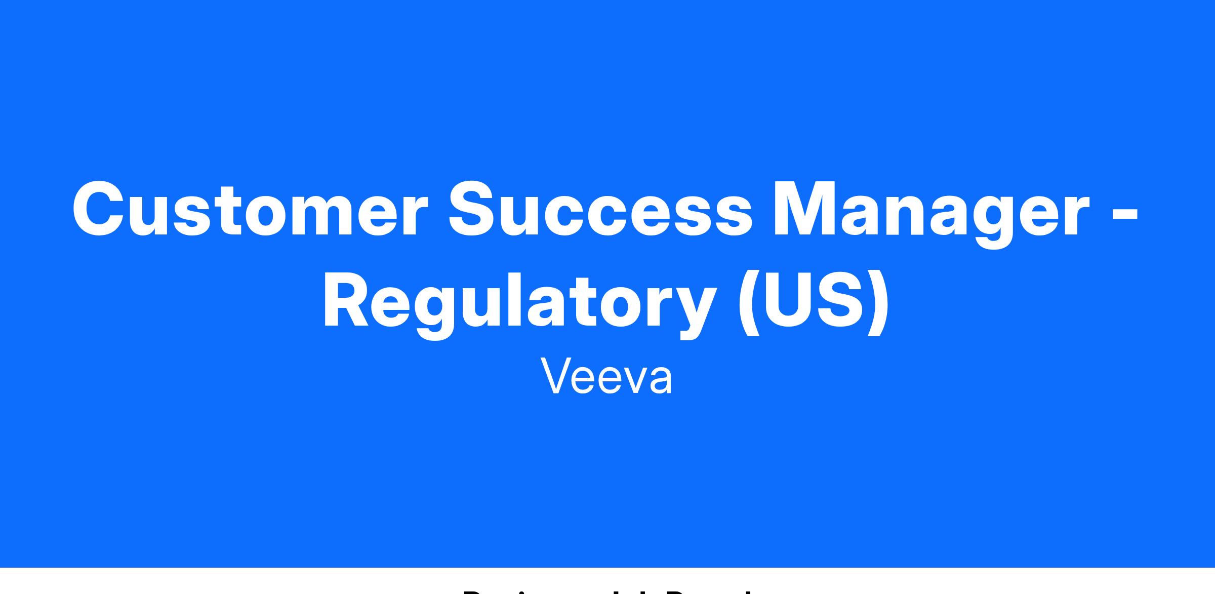 As a Customer Success Manager, you will be responsible for ensuring our customers’ success with Veeva’s regulatory products and services. You will serve as the liaison between Veeva and key customer stakeholders, fostering collaboration, triaging escalations, and highlighting value through proactive engagement.