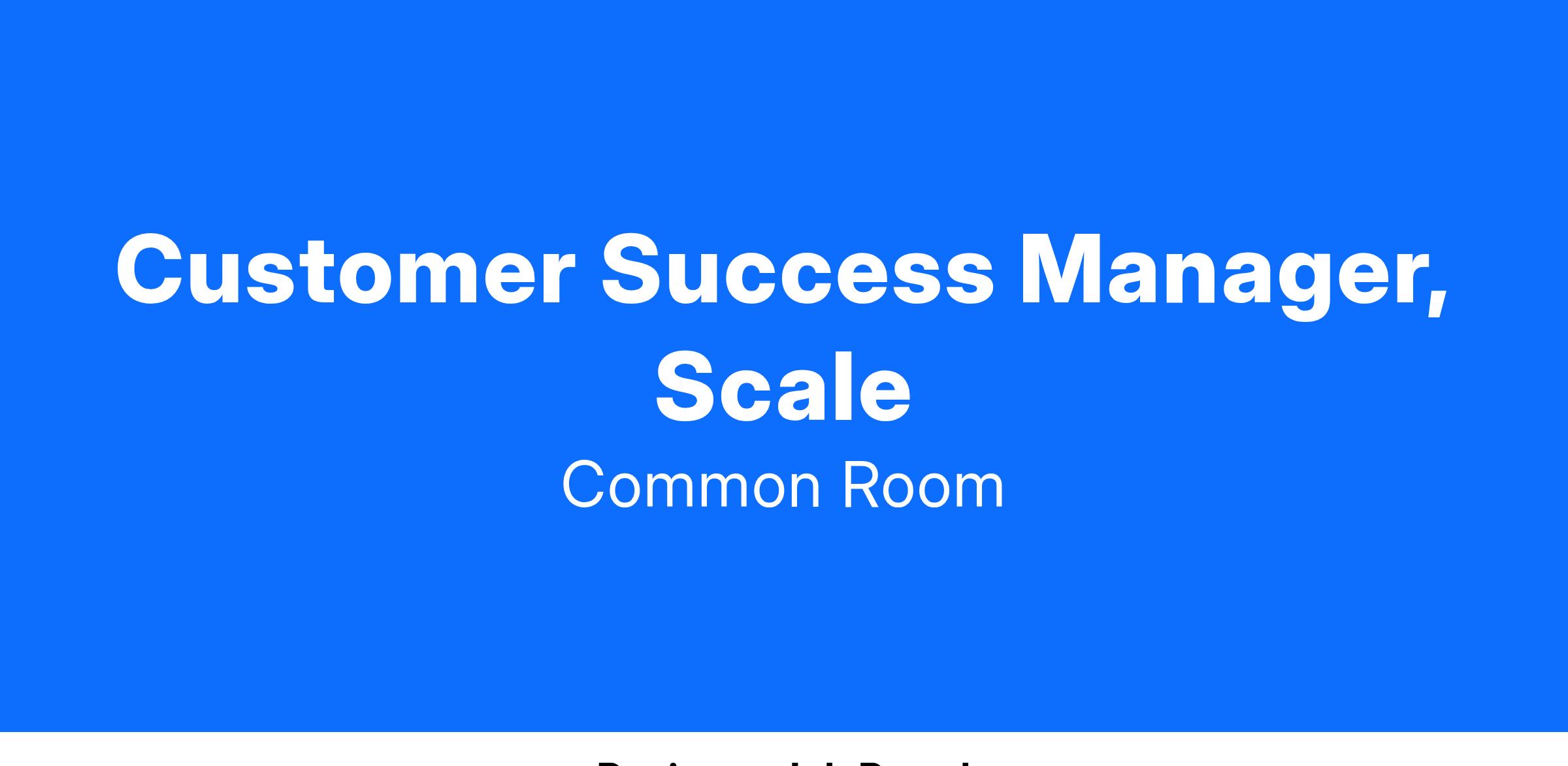 We are looking for a full time customer-obsessed builder that is excited to partner with companies including Figma, Confluent, and Notion in their post-sales lifecycle. You’ll play a critical role in shaping our customer journey—focused on creating a meaningful experiences and content that will empower our customers to be successful in using Common Room. In doing so, you’ll help drive onboarding, adoption, and business strategy for our customers and their communities.