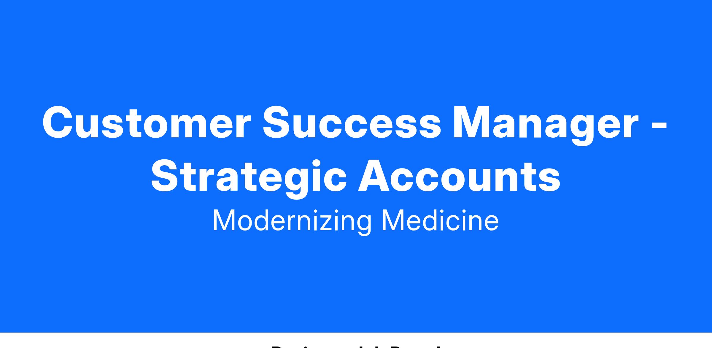 ModMed is hiring a driven Customer Success Manager to join our positive, passionate, and high-performing Strategic Customer Success team focused on acting as the post-sale consultative partner and trusted advisor to our Orthopedic clients, and is responsible for the retention and advocacy of an assigned book of business. This is an exciting opportunity to serve as the primary relationship owner between our strategic customers and internal stakeholders within a fast-paced Healthcare IT company that is truly Modernizing Medicine! The CSM will be held accountable for articulating the value of our SaaS cloud platform, while driving customer engagement and adoption. It is expected that the CSM will understand their customer’s business goals and advocate on their behalf by proactively identifying risk(s) and collaborating internally to deliver solutions and identify appropriate upsell opportunities.