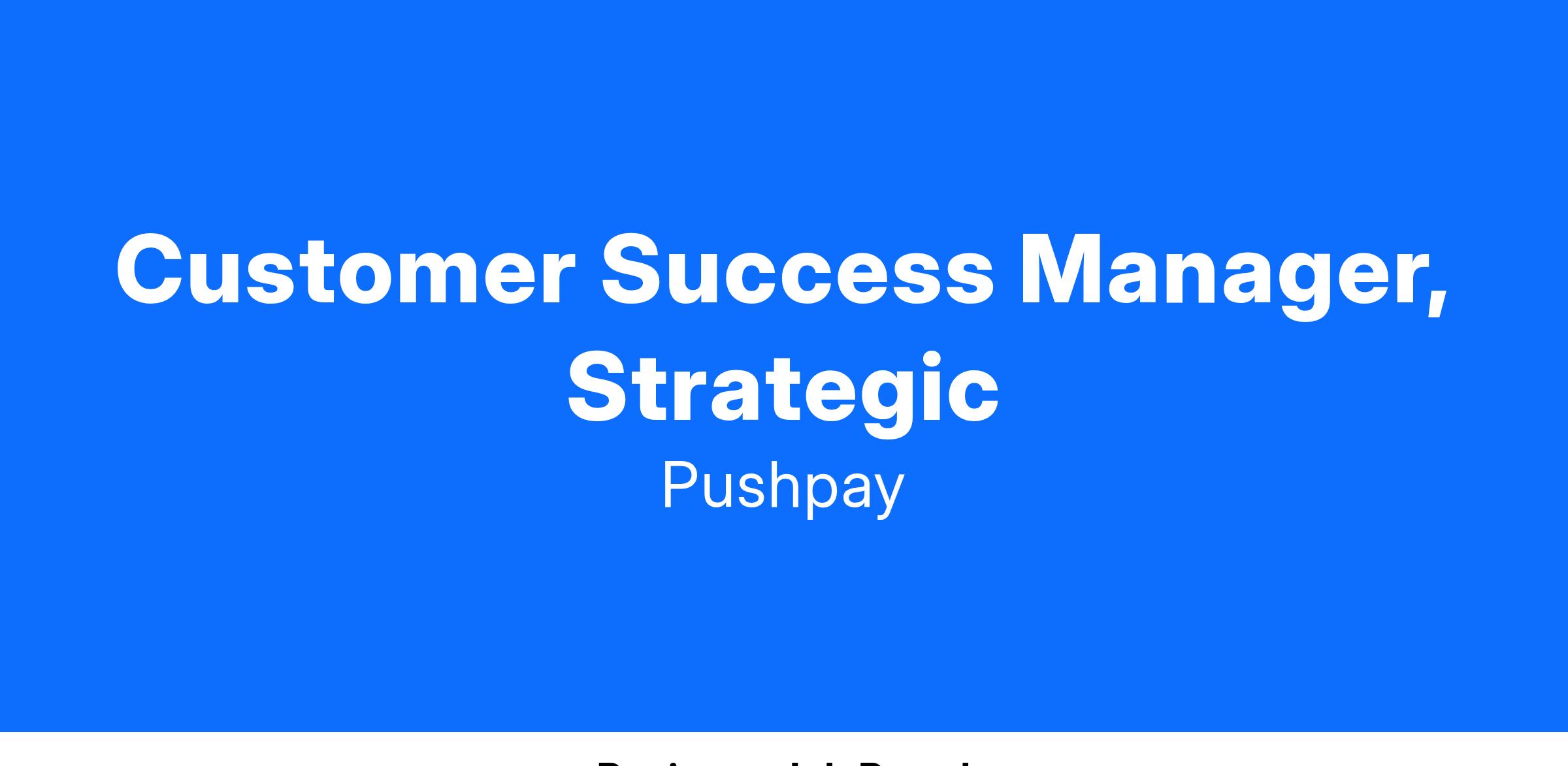 At Pushpay, the Strategic Customer Success Manager plays a key role in building and fostering relationships with our key Enterprise customers. You will be quota-based, where you are responsible for the retention, renewal rate, and increased business in a specific book of accounts,including structuring contract terms and pricing that drive business objectives. You will interact and build relationships with our customers to ensure they are both using and seeing value from their Pushpay platform. Your goals will include annual renewal dollars, expansion, and upsell of products, and growing giving through the Pushpay platform. You are here to ensure customer success by being dedicated to making our customers successful in their deployment, adoption, and usage of Pushpay. You will do all of this while creating a strong relationship with our customers based on value realization. Additionally, you will proactively build and grow relationships with senior staff and executive contacts of these strategic customers. The customer satisfaction you foster will help you retain our customers.