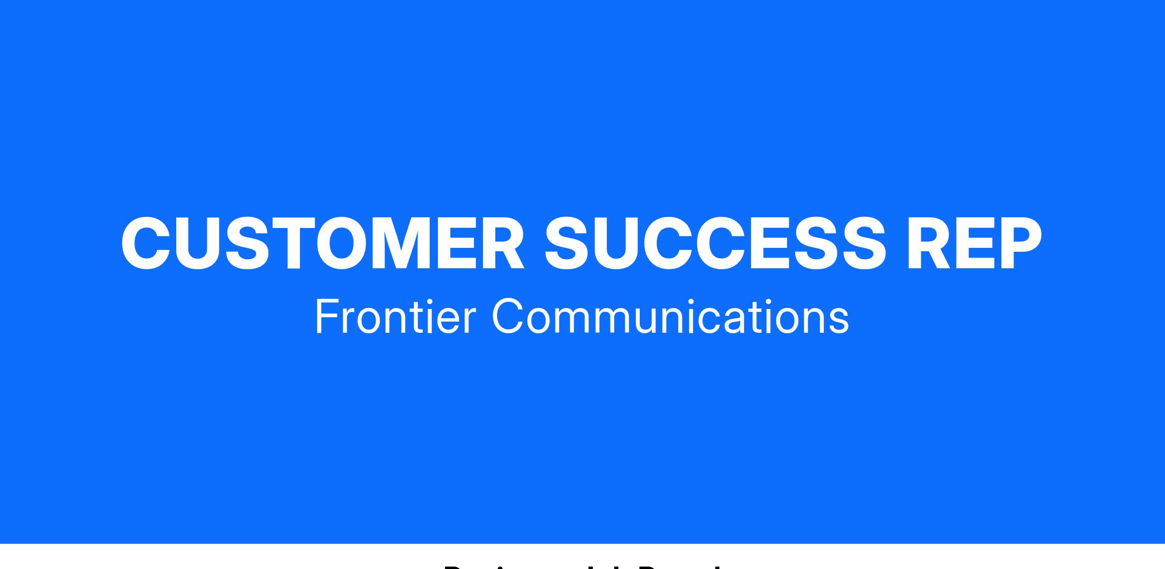 Frontier Communications is an Affirmative Action and Equal Opportunity Employer. All qualified applicants will receive consideration for employment without regard to race, color, religion, sex, sexual orientation, gender identity, national origin, or protected veteran status and will not be discriminated against based on disability.
