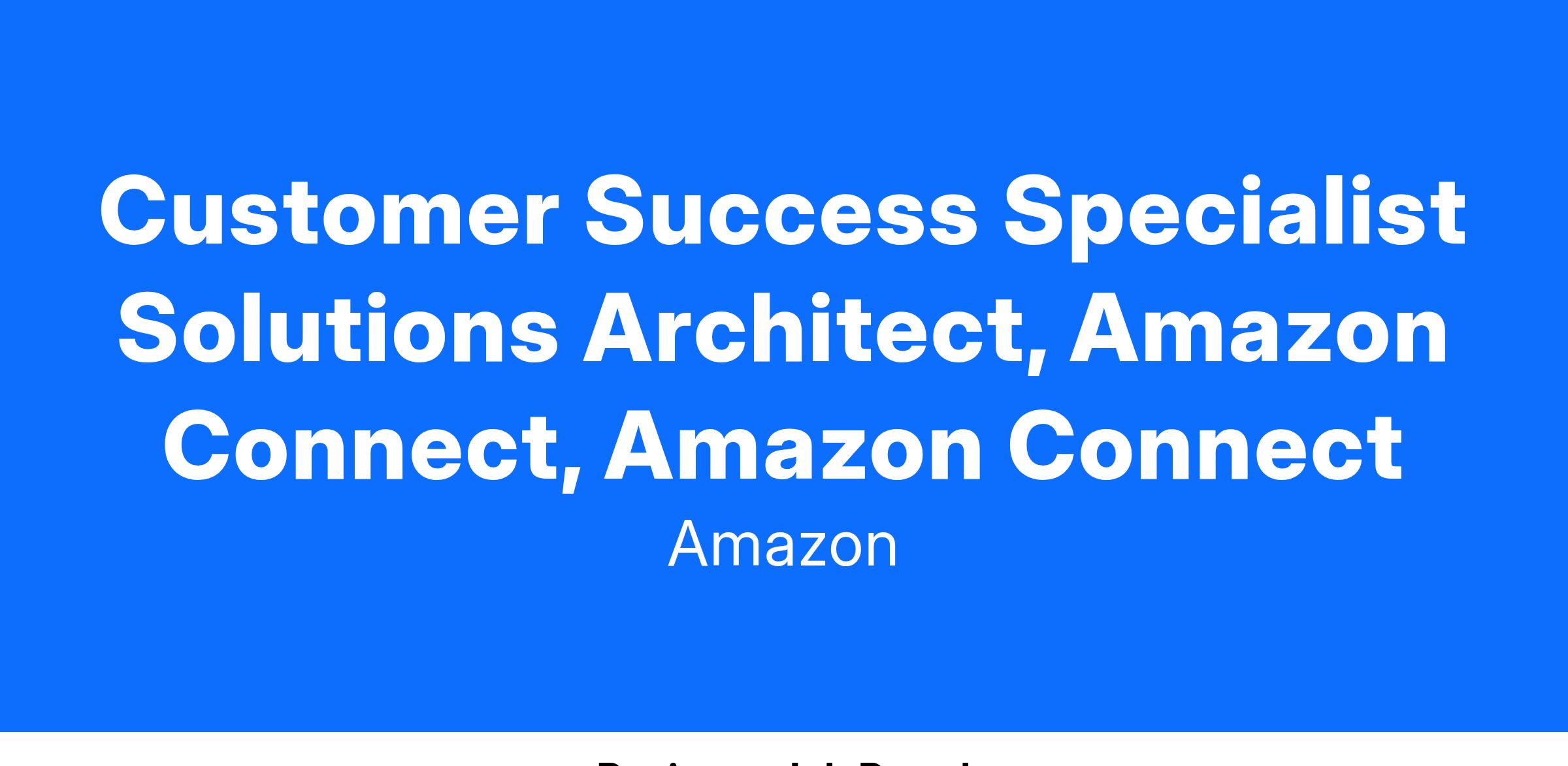 Customer Success Specialist Solutions Architect, Amazon Connect, Amazon Connect