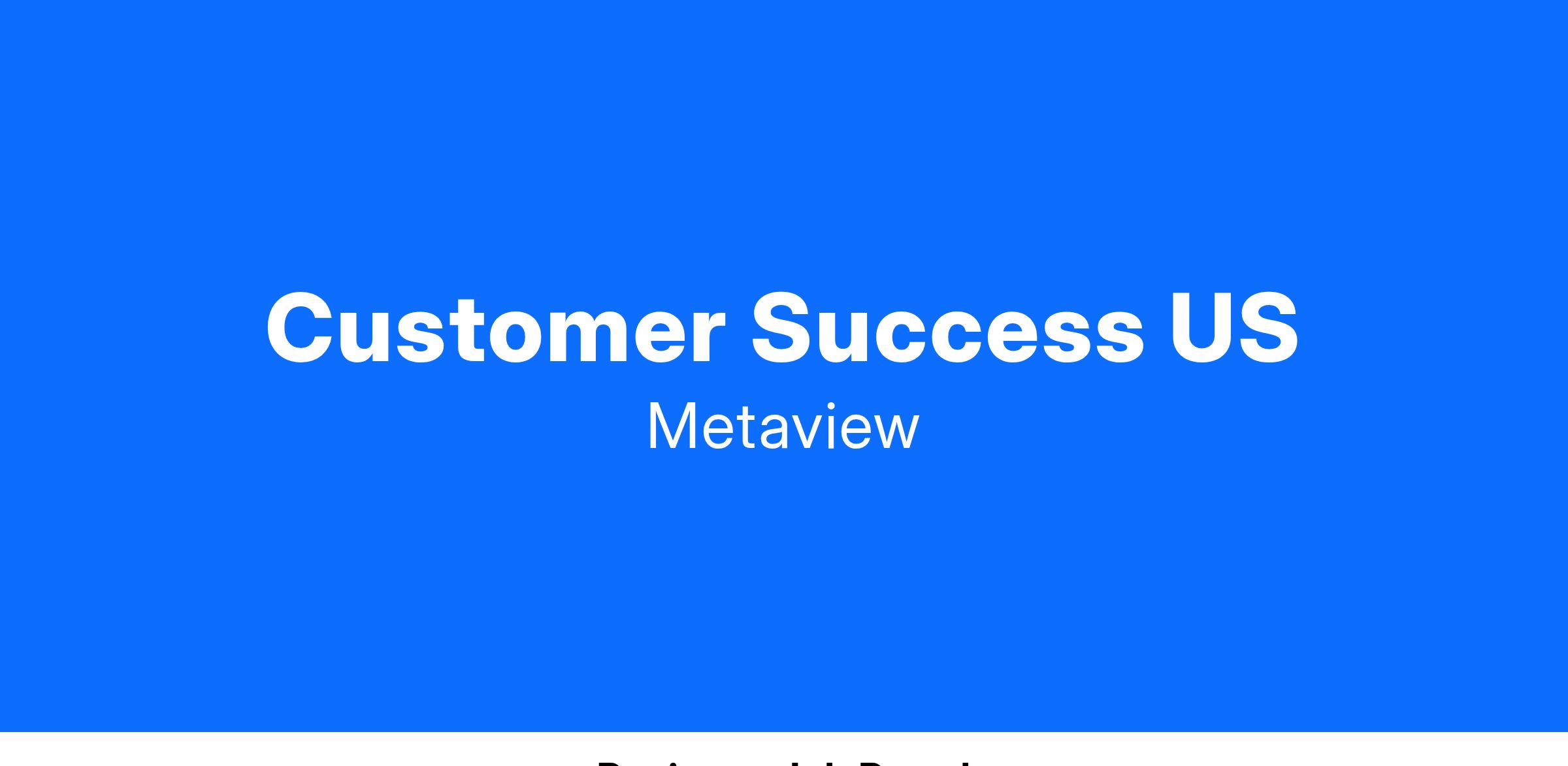 The Customer Success team partners with our key customers to ensure a seamless and engaging experience on Metaview, driving retention and growth. Your role will be to: