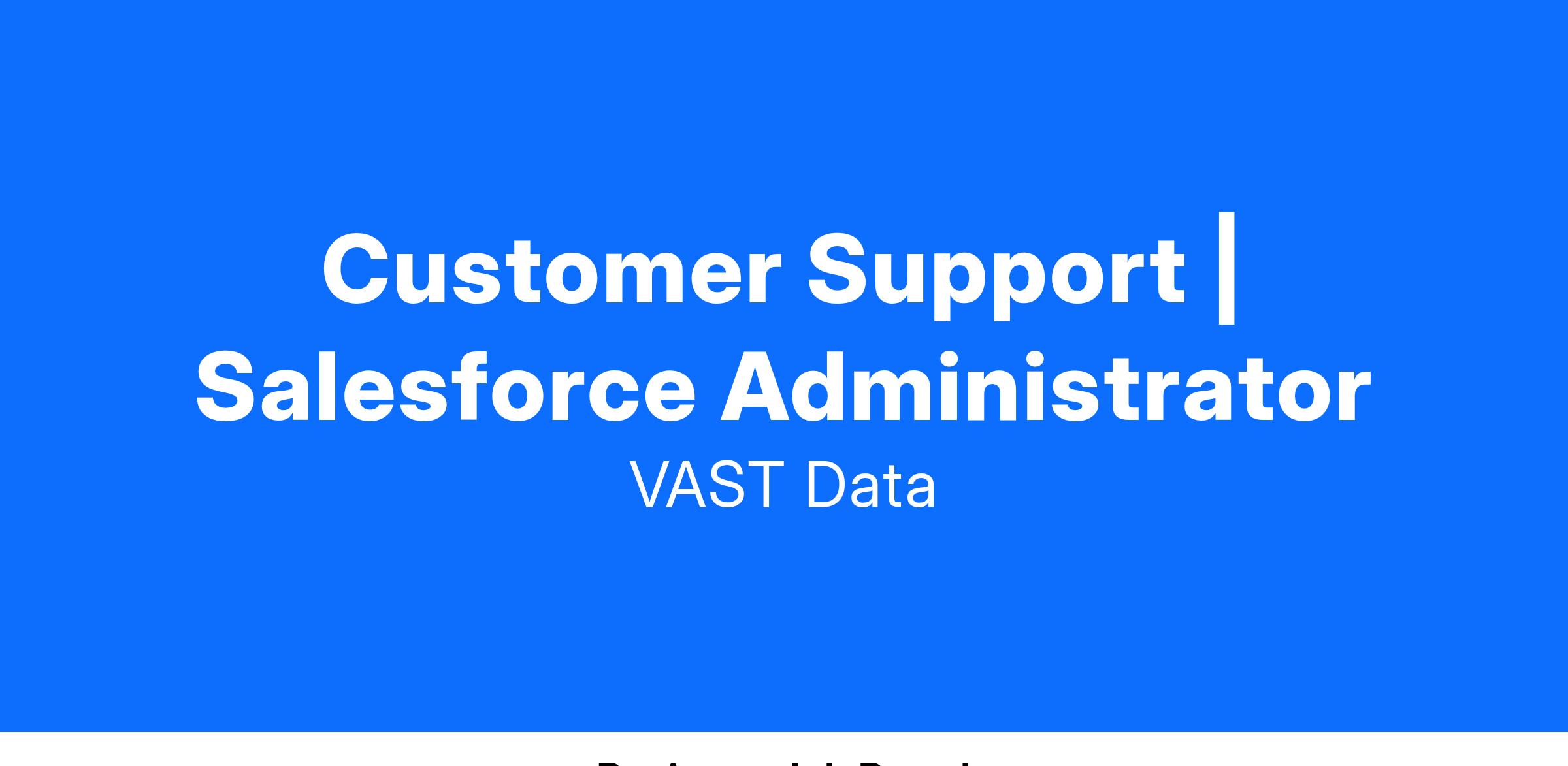 This will be a technical resource that combines an extensive Salesforce admin experience with a strong understanding of Customer Success (CS) related programs, org structures, tools, best practices, and strategies. This resource will be dedicated to supporting VAST Data’s Customer Success (including customer support and professional services teams, working directly with all levels of the organization. This technical role would be focused on 5 main areas, related specifically to our organization’s use of Salesforce in the broader business context: