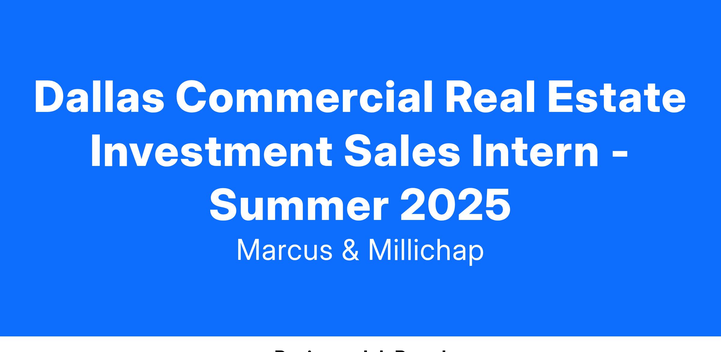 Dallas Commercial Real Estate Investment Sales Intern - Summer 2025
