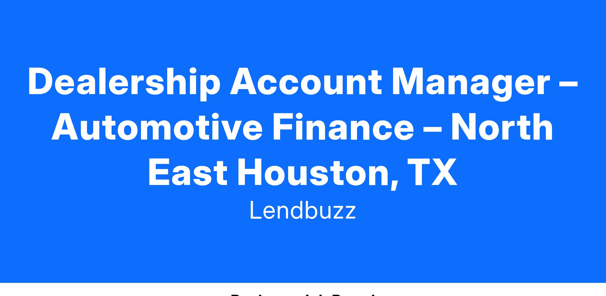 At Lendbuzz, we value innovation and diversity and are committed to driving success in the automotive industry. As a Dealership Account Manager, you’ll play a key role in our growth and impact in the auto finance space. If you’re ready for a challenging and rewarding role in Texas, apply now!