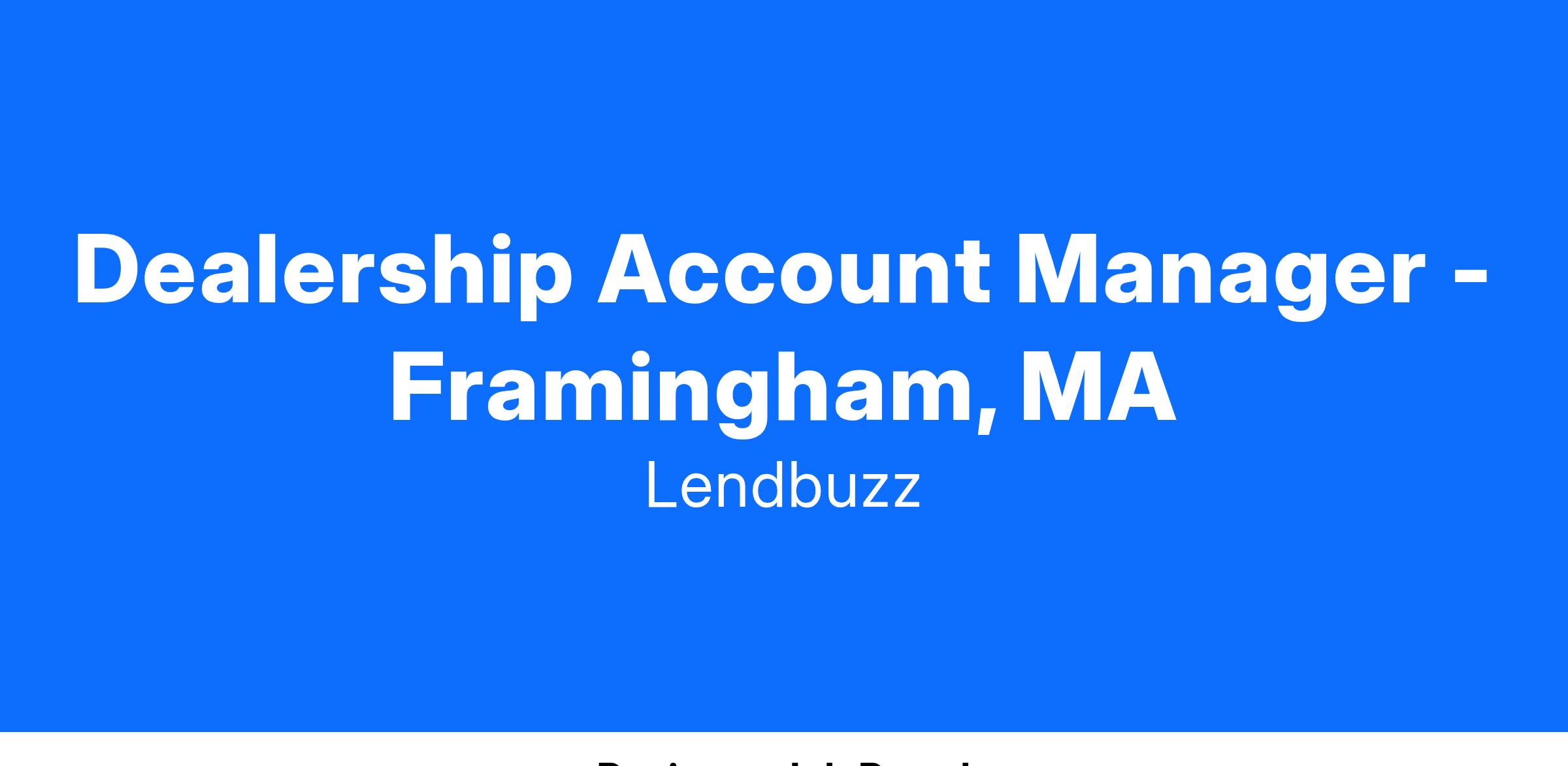 Are you passionate about driving success in the automotive industry through innovation and diversity? Lendbuzz is seeking a talented Dealership Account Manager to join our dynamic field sales team in Framingham, MA. This role is ideal for an auto finance expert eager to boost market share and forge strong relationships with dealership partners.