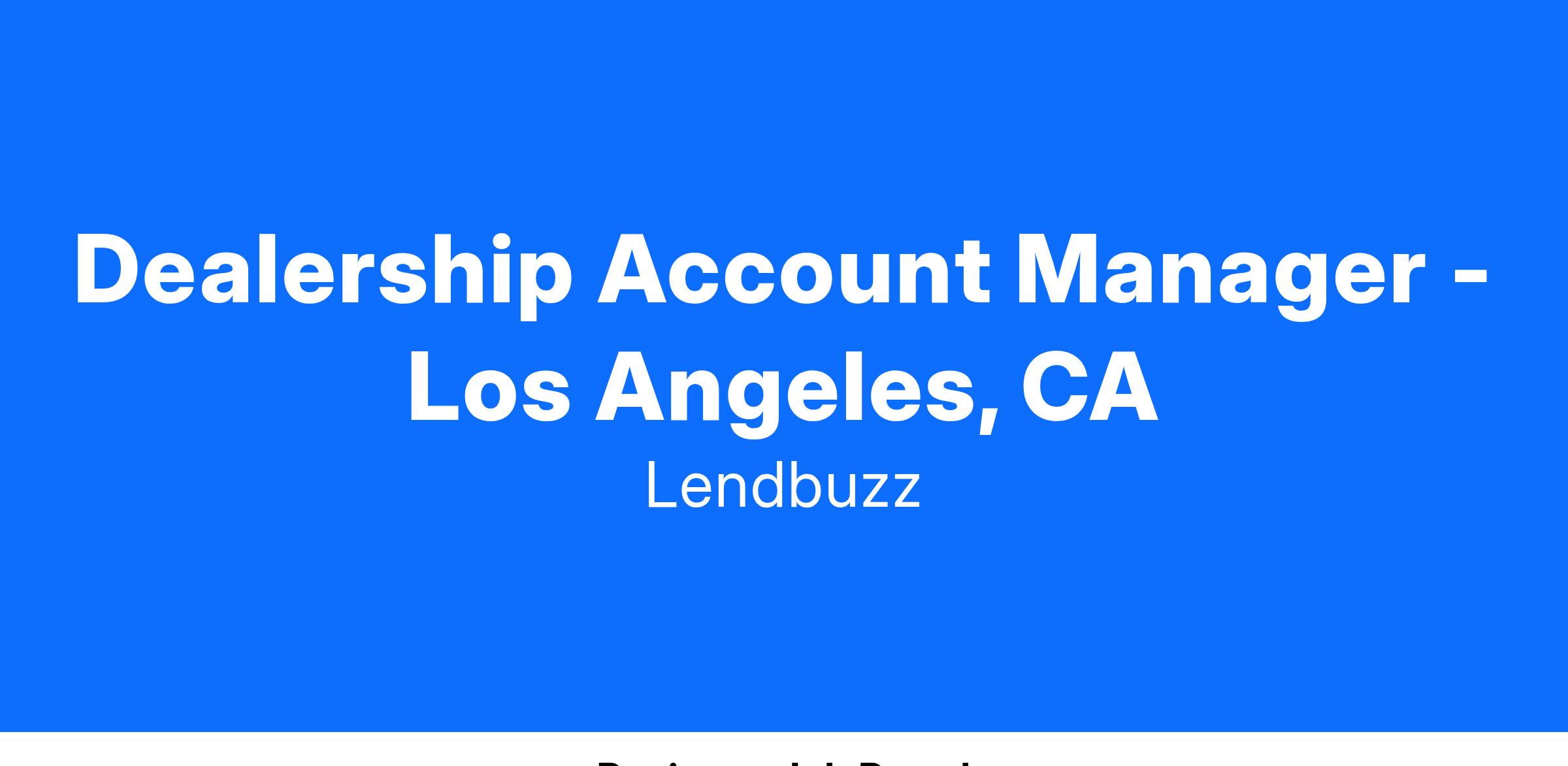 Are you passionate about driving success in the automotive industry through innovation and diversity? Lendbuzz is seeking a talented Dealership Account Manager to join our dynamic field sales team in Los Angeles, CA. This role is ideal for an auto finance expert eager to boost market share and forge strong relationships with dealership partners.