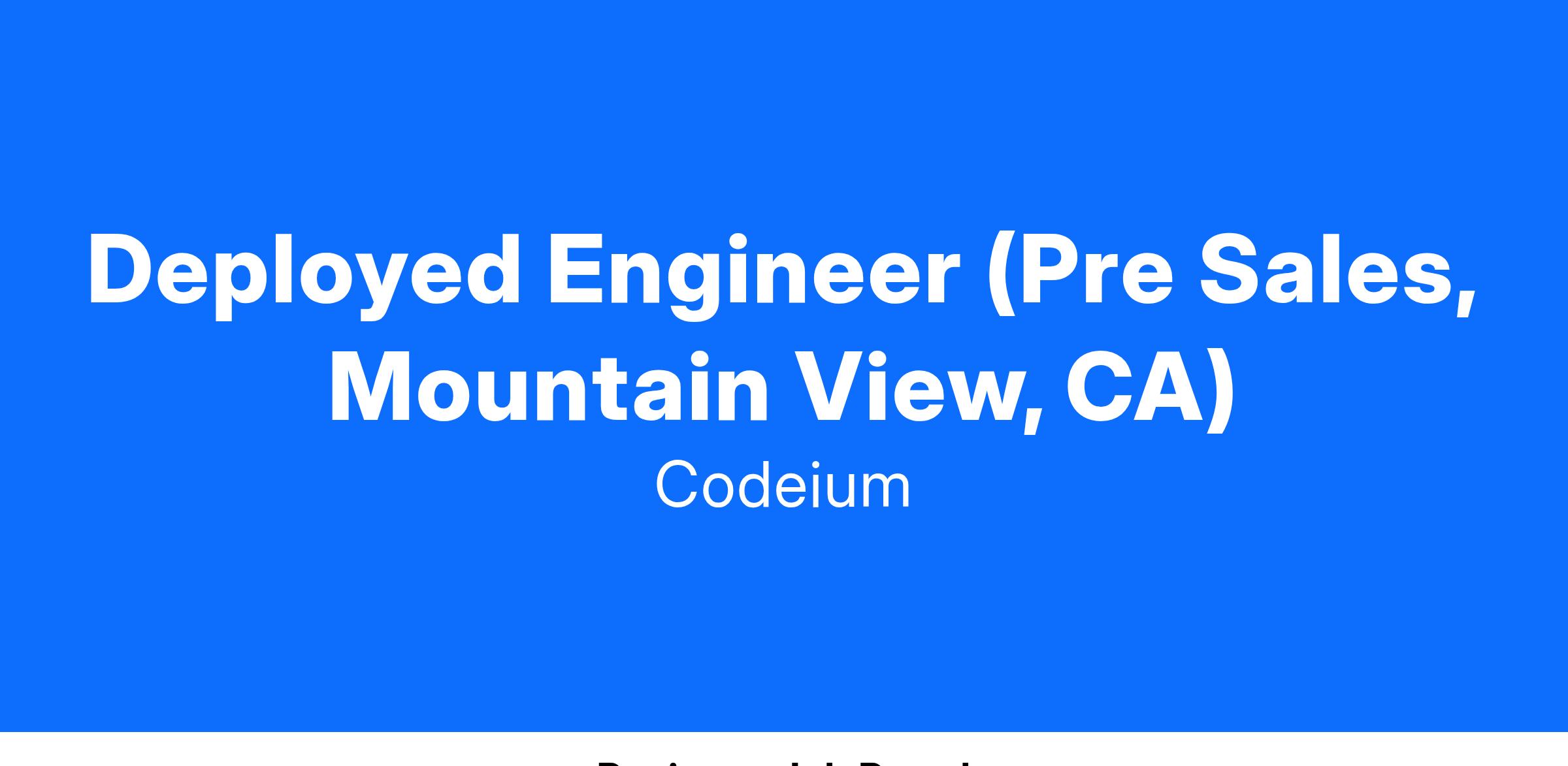 As a Pre-sales Deployed Engineer at Codeium, you’ll help to transform customers' software development workflow through the use of our AI coding tools. You’ll collaborate closely with Sales to qualify and close opportunities, acting as the key technical advisor and product advocate.