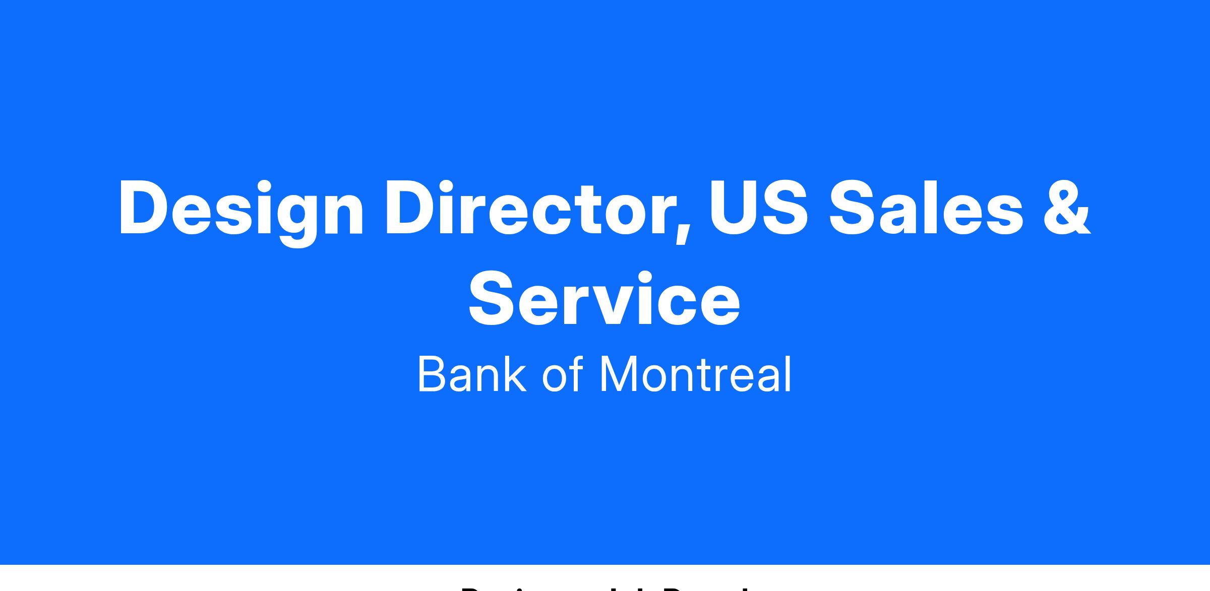 Customer SolutionsIn addition to the below, this role will act as a trusted advisor and senior specialist to BMO leadership, to help inform business decisions with a customer lens, leading the design delivery of large-scale strategic initiatives in collaboration with key stakeholders, influencing product roadmaps, delivering on business goals, and creating engaging customer experiences, advocate for the customer and champions an empathetic mindset with a focus on customer needs and expectations and consistently leverages data to drive design direction and support the definition of key customer metrics to inform decision making
