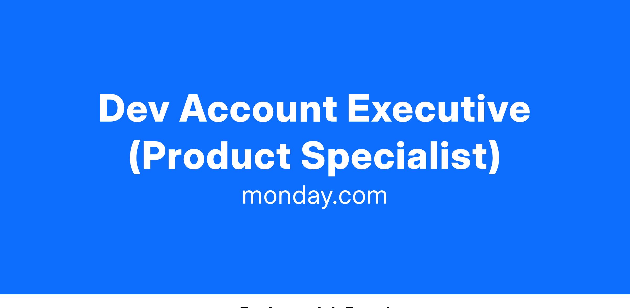 This is the start of something BIG! As an Account Executive for our Dev product (our newest growing product line) you will be responsible for scaling monday Dev sales by providing expert-level industry, sales, and product knowledge to our customers - focusing on the value our monday.com product delivers as part of our WorkOS platform.