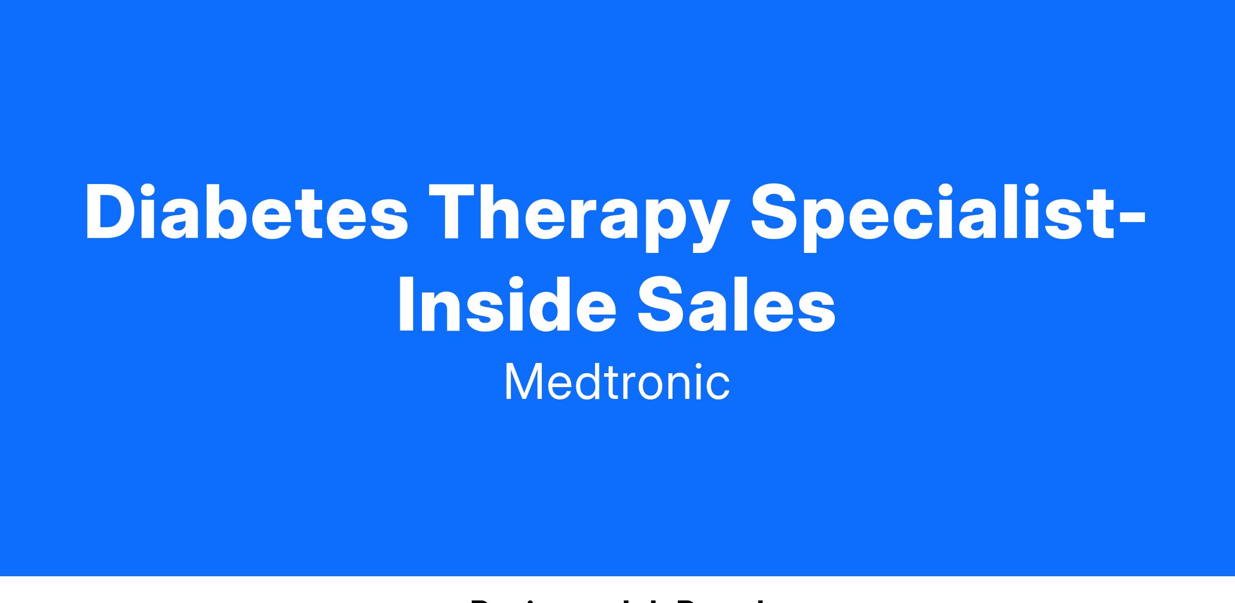 Work to achieve individual sales targets within the Diabetes product portfolio by quickly following up on leads generated through Medtronic’s marketing and sales efforts.