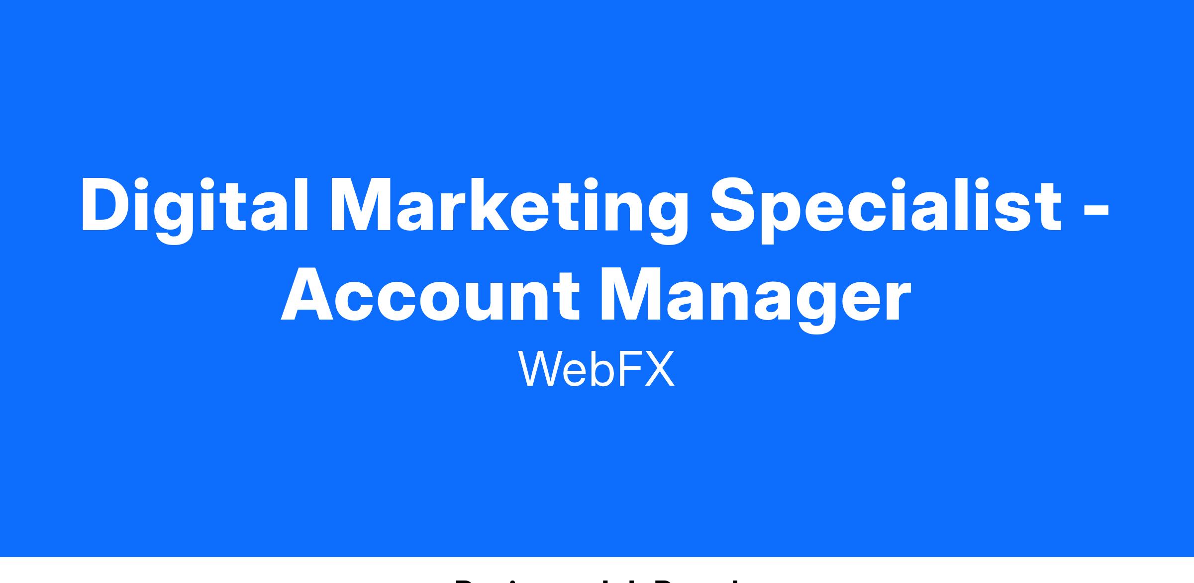 Note: The Digital Marketing Specialist - Account Manager is a client-facing position