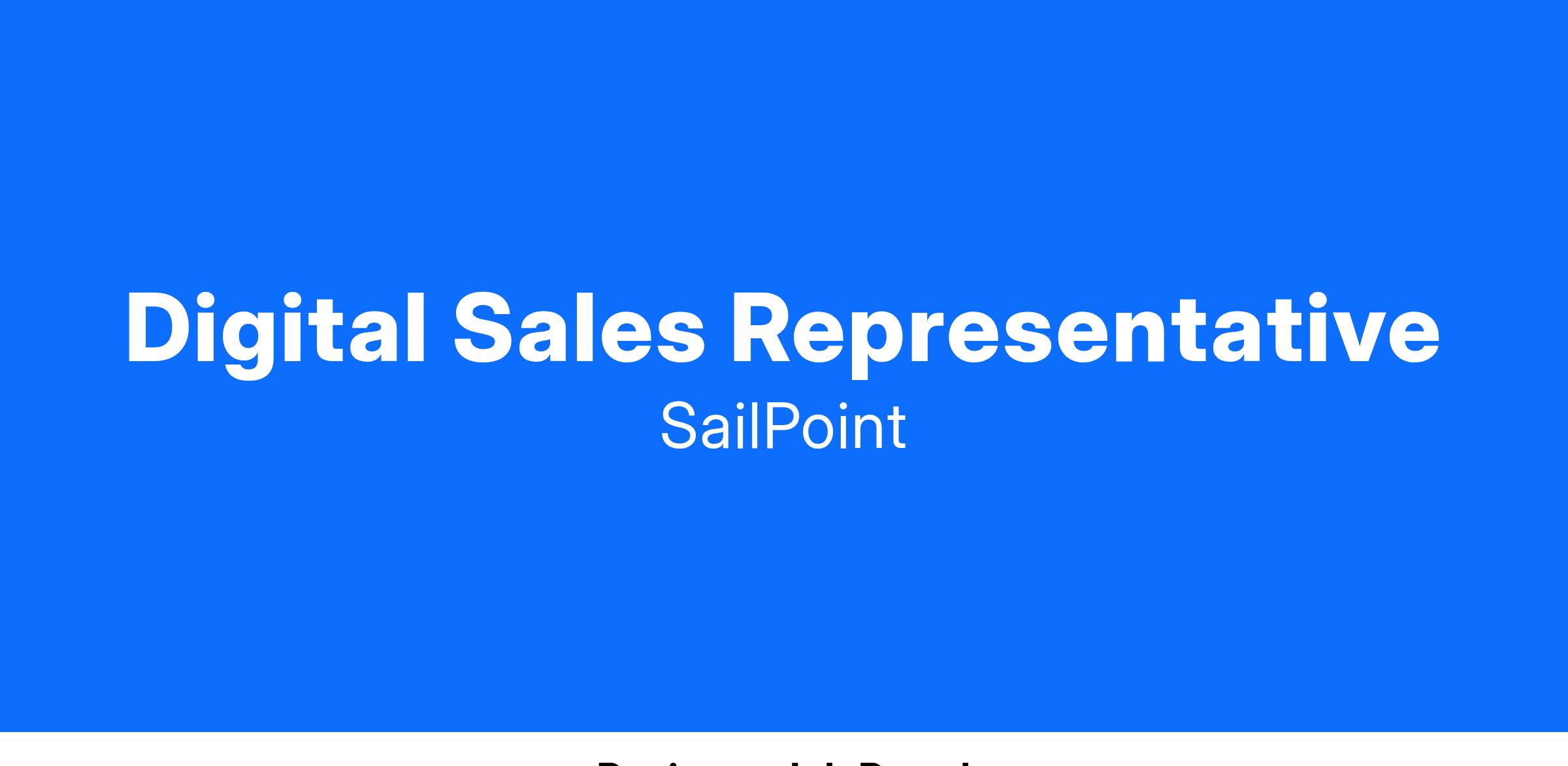 SailPoint is looking for a talented, enthusiastic, and motivated Digital Sales Representative who will be responsible for driving sales growth through proactive outreach, relationship building, and strategic sales tactics. Using your experience in SaaS (Software as a Service) opportunity creation & sales, you will be responsible for delivering a positive customer experience using the SailPoint sales model while maximizing revenue in target accounts. In this role, you will be linked with a team of field sales counterparts (Outside Account Executive, SEs, Channel Partners, etc.) helping to penetrate new accounts and cross-sell into existing SailPoint accounts.