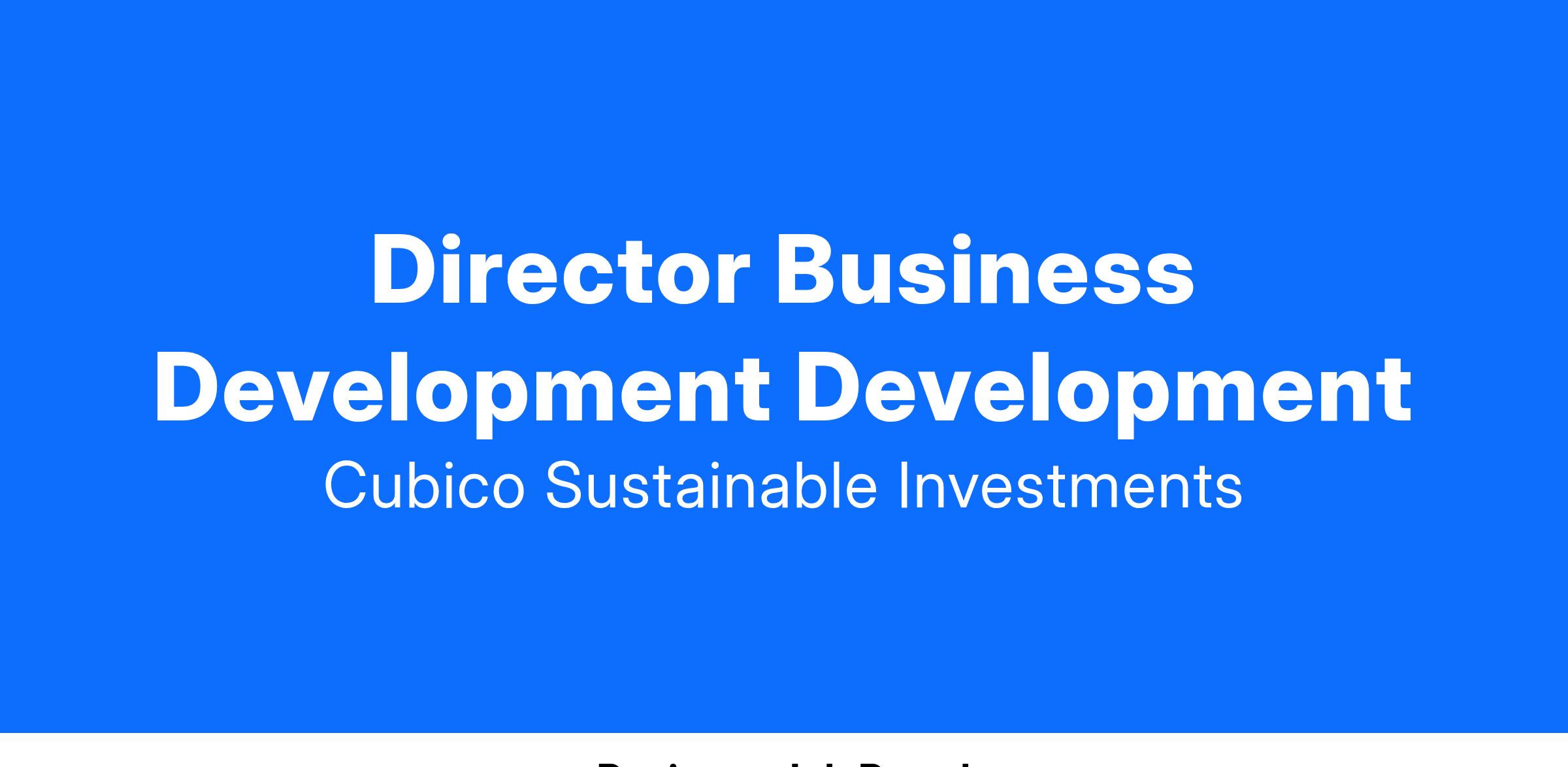 The role will be based in Cubico’s Austin office, working closely with the Development and Investments teams to drive growth.