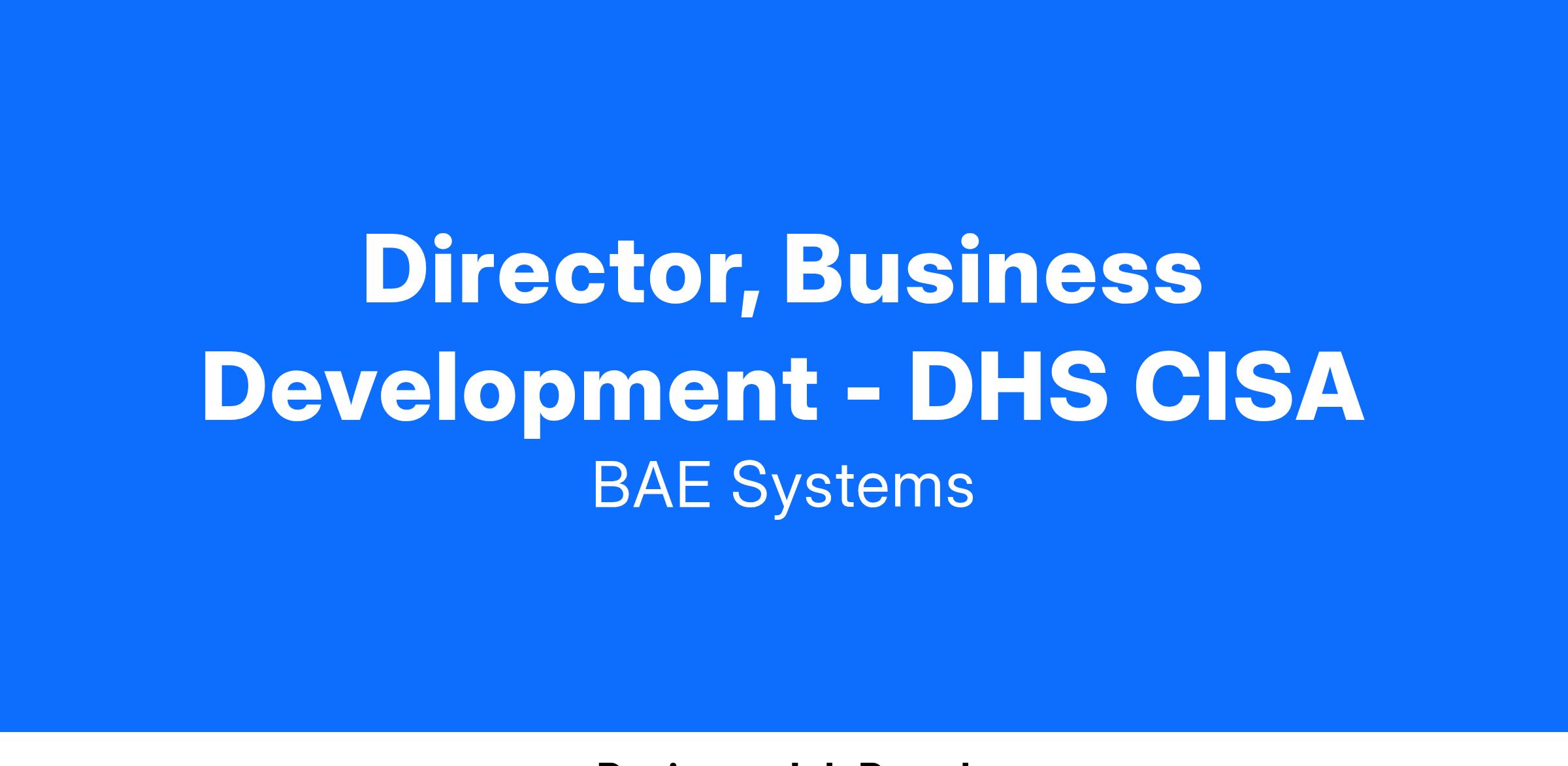 Experience leading opportunity captures including: developing overall win strategy; shaping deals with customers; developing teaming strategies; identifying and closing with teammates; understanding p... [customer engagement business development value propositions new business development solution selling government contracting technology solutions cybersecurity secret sci clearance]