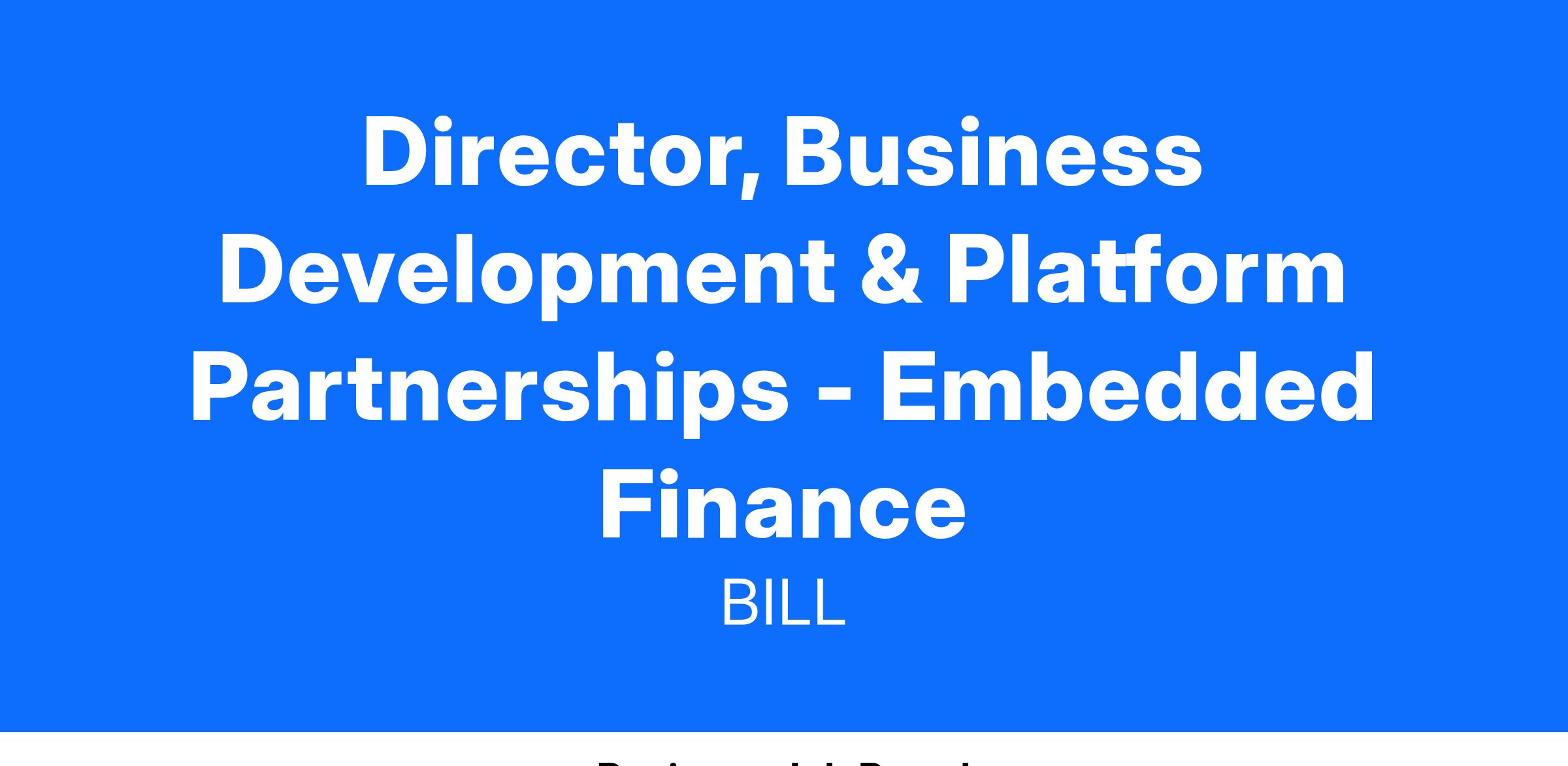 As the Director of Business Development at BILL, you will be a key player in shaping the strategic partnerships and alliances that fuel our growth and impact. You'll be part of a dynamic team that thrives on collaboration, creativity, and a shared commitment to making financial processes smoother for businesses. Your role will involve forging partnerships, expanding our ecosystem, and contributing to our mission of creating a more connected and efficient financial world.
