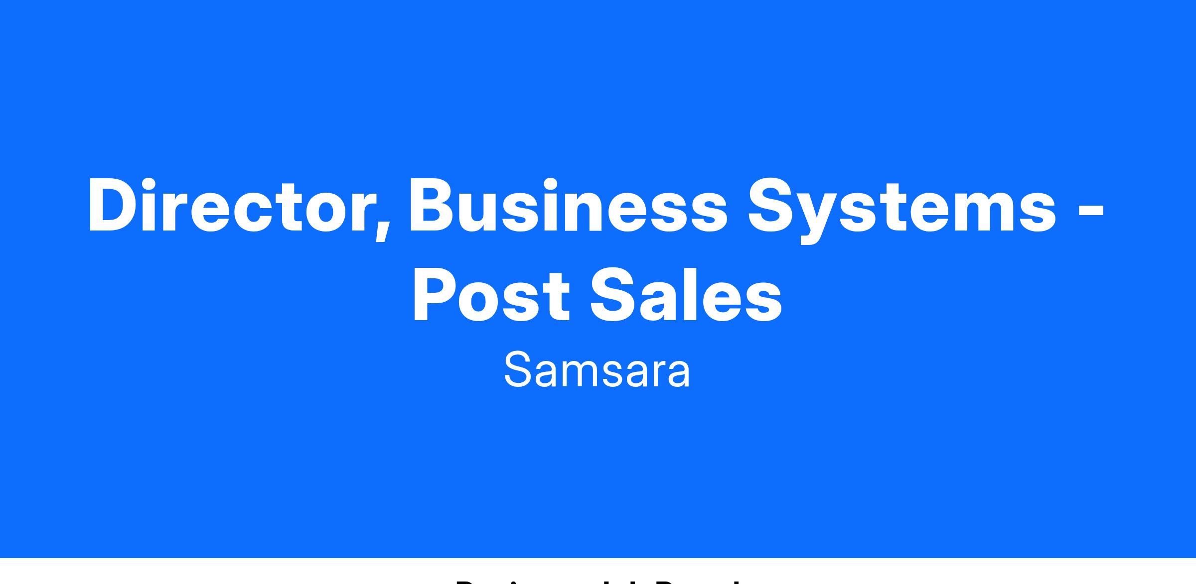 We are seeking a strategic and dynamic Director of Business Systems - Post Sales to oversee the evolution and optimization of our customer-facing systems. Reporting directly to the VP of GTM Systems, this role will require a strong executive presence, advanced influencing and communication skills, and deep business acumen. The successful candidate will work closely with Customer Support, Customer Success, Partnerships, and Business Technology teams to support the post-sales customer journey.