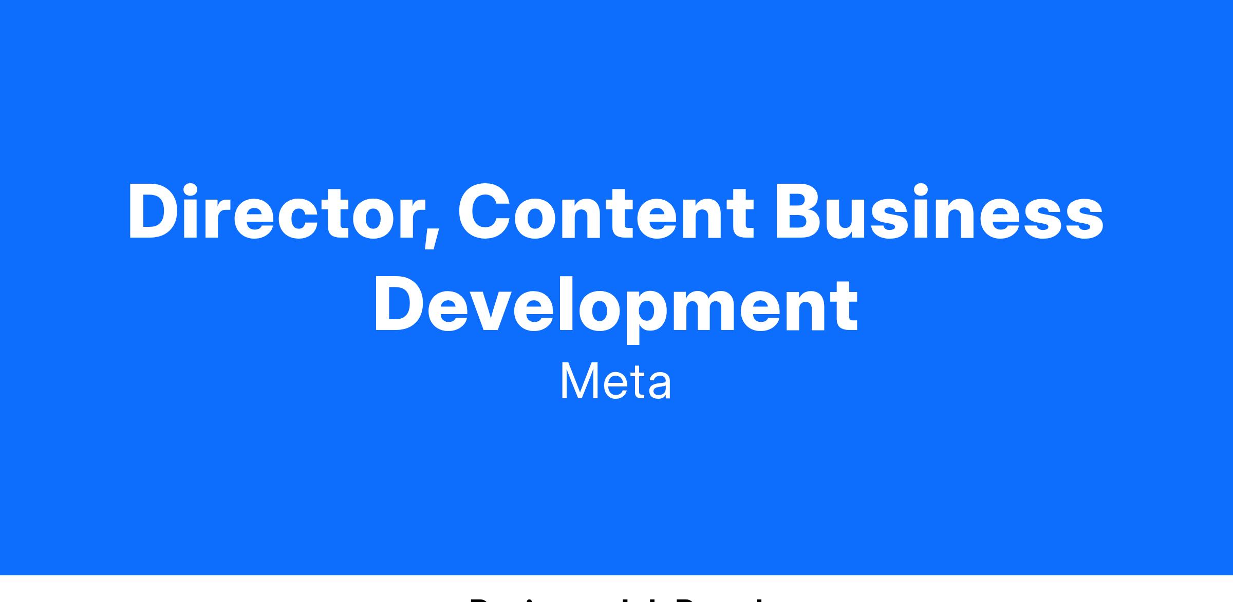 Meta is looking to hire a Director, Content Business Development in the Global Partnerships & Content organization. This is a unique opportunity to lead cross-functional work on business development strategy; support product priorities for Facebook, Instagram and GenAI; and work closely with both the Partnerships and Product teams as well as Legal, Operations, Analytics and Policy to deliver results. This is a highly visible role that will partner with leaders across Meta. The ideal candidate will have experience leading a full suite of content deals and product strategy in a complex digital environment. They are a self-starter who is comfortable with rapid change, and will take a proactive and strategic approach to business development, relationship management, and product strategy. They will have the ability to bridge short-term goals with long-term strategy to build durable and trusting partnerships. They will have experience working with partners around the globe and a track record of crafting โfirst of their kindโ partnership opportunities with external partners.