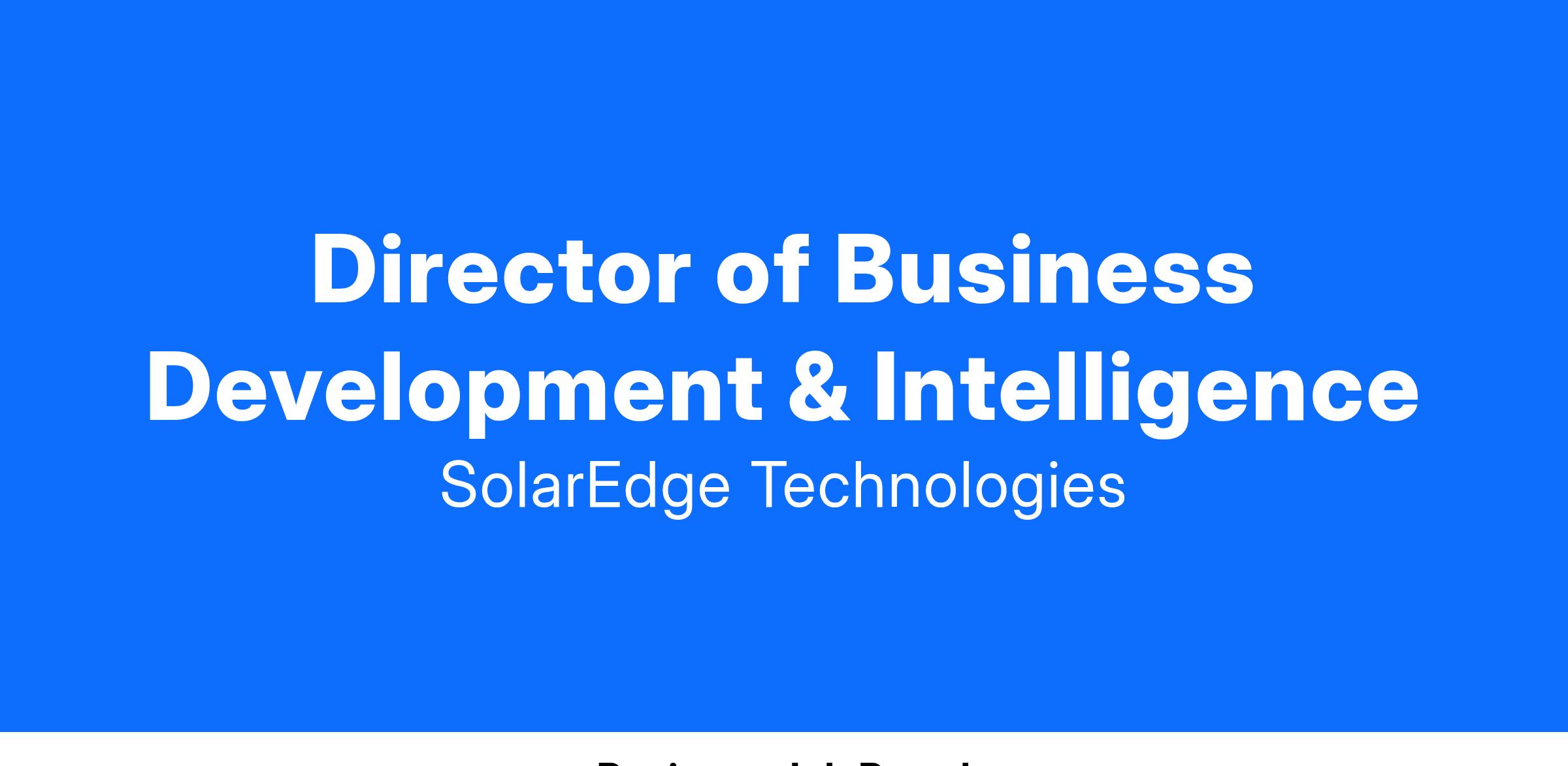 Power the Future with us! SolarEdge (NASDAQ: SEDG), is a global leader in high-performance smart energy technology, with over 5000 employees, offices in 34 countries, and millions of products installed in over 133 countries. Our diverse product offering comprises intelligent solar inverters, battery storage, backup systems, EV charging, and complete home energy management ecosystems.