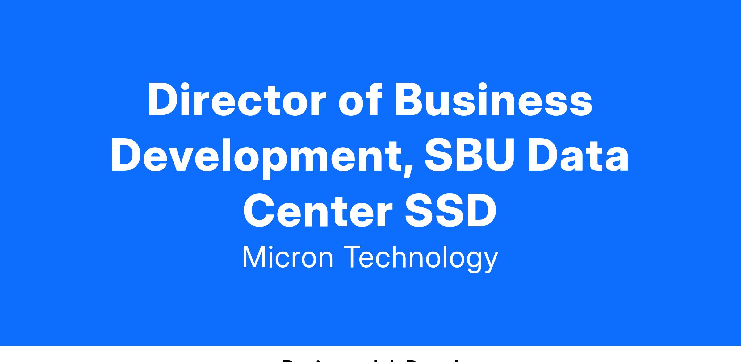 We are seeking a highly motivated and experienced Director of Business Development to join the Storage Business Unit’s Data Center SSD team.