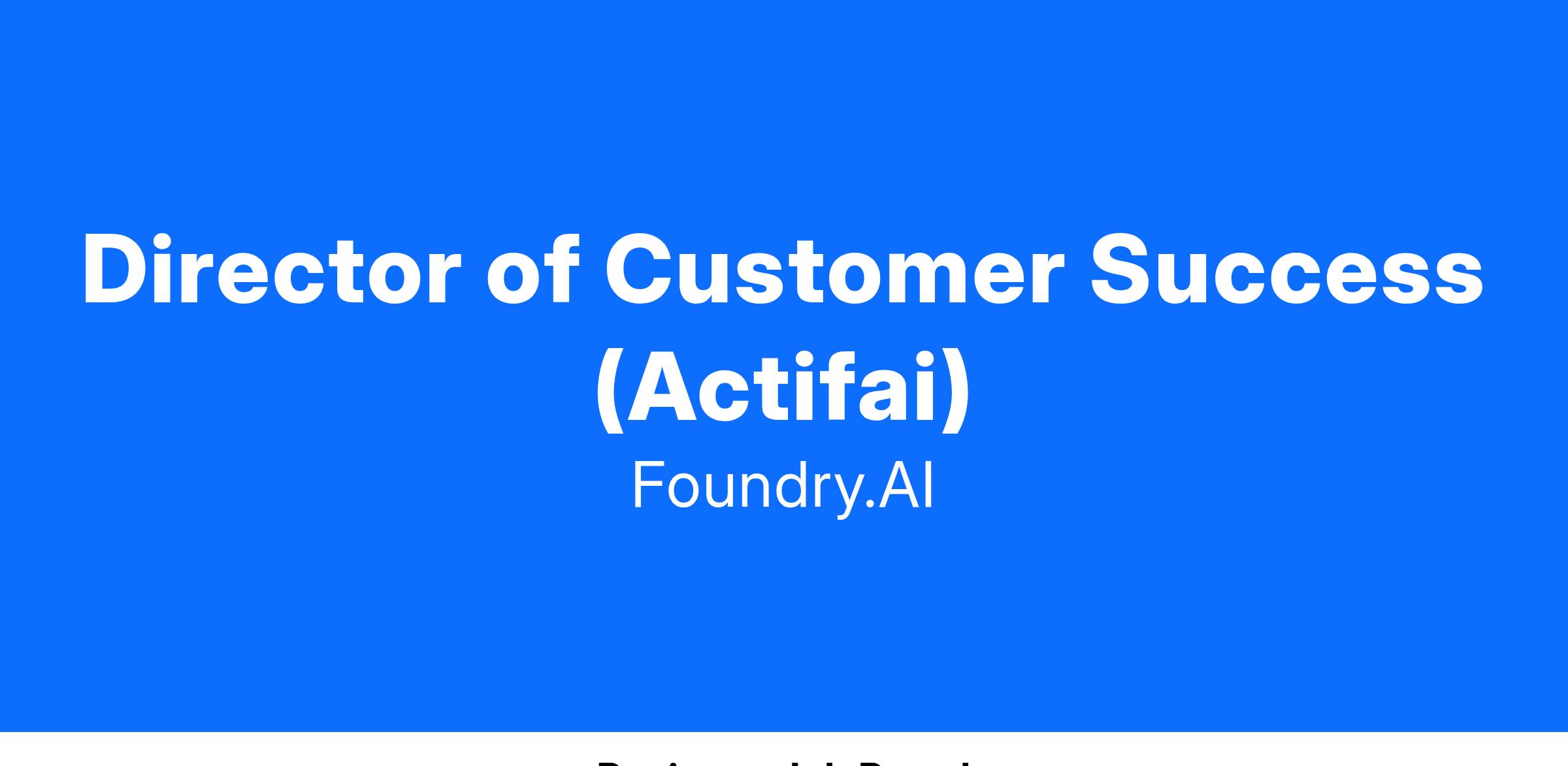 Foundry.ai portfolio company) is seeking a Director of Customer Success to lead customer success at Actifai.