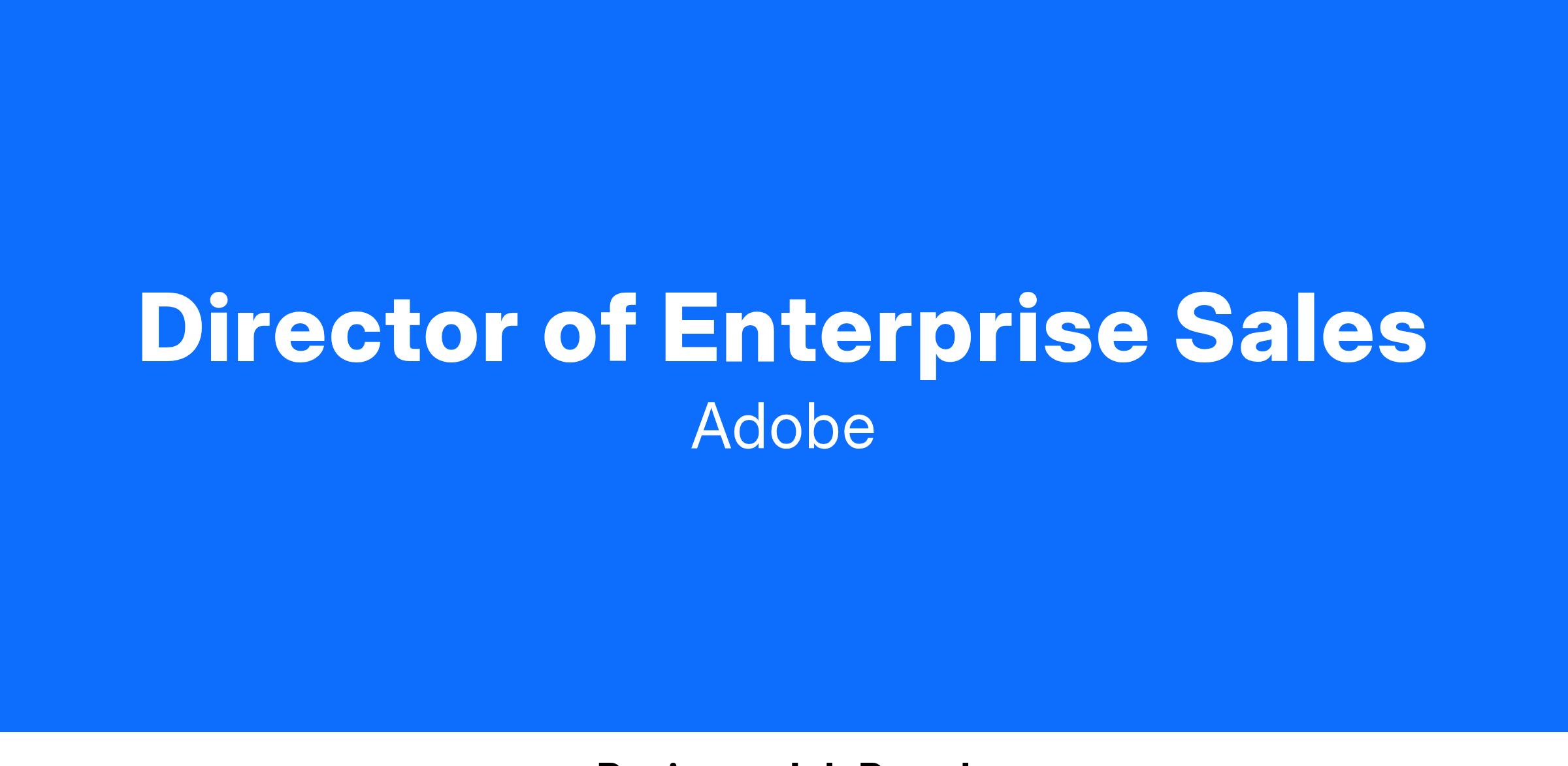 As we continue to grow our Digital Learning business in the North American region, we seek a Director of Digital Learning and industry Sales, reporting to the Senior director of global sales. The role will be responsible for consistently growing revenue for the Adobe Learning Manager platform within large strategic customers across North America.