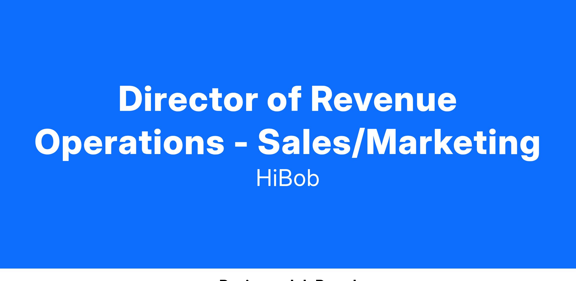 This role will oversee the strategy, design, and implementation of processes that improve sales productivity, marketing effectiveness, and customer success efficiency. The ideal candidate will have a deep understanding of Revenue Operations, strong analytical skills, and the ability to lead cross-functional teams.