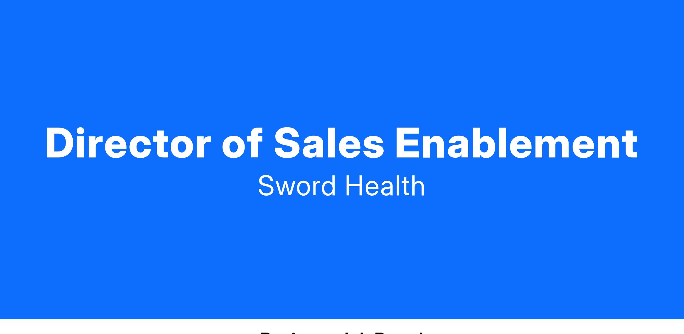 The Director of Sales Enablement at Sword Health will lead the strategic development and execution of comprehensive sales enablement programs. This role is pivotal in equipping the commercial team with the tools, resources, and training necessary to enhance their effectiveness, shorten ramp time, and consistently achieve or surpass company goals.. The Director of Enablement will drive initiatives that unify global best practices, improve messaging accuracy, and support successful commercial methodologies across the organization, including hiring, development, sales, customer success, and channel management.