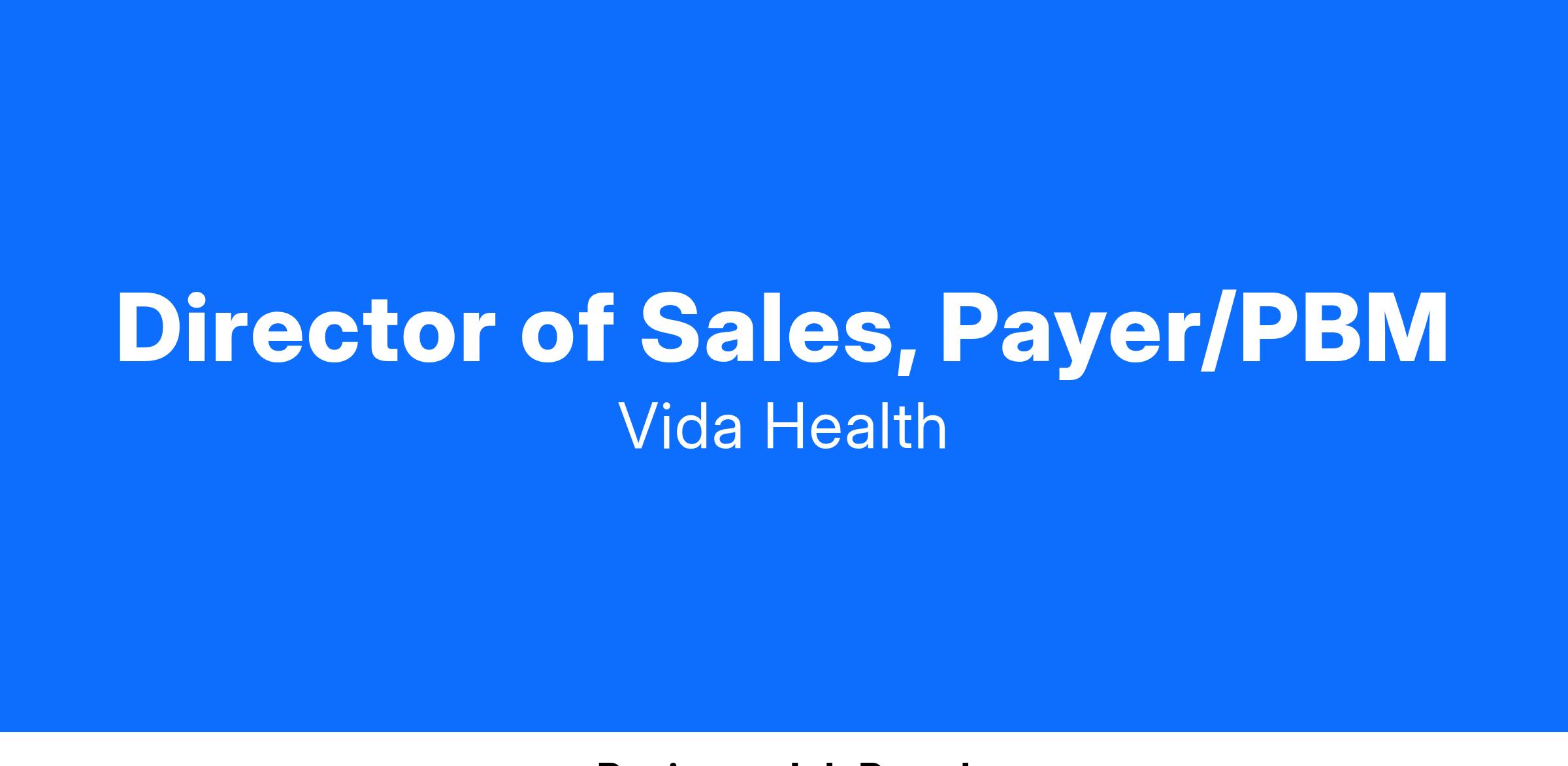 Reporting to Vida's SVP of Payer & PBM Sales, the Channel Sales Director is an important strategic role responsible for managing a portfolio of high value health plans and PBMs. This individual will be responsible for generating revenue through these partnerships by developing and executing sales and marketing strategies, building relationships with external stakeholders and building a pipeline of sales opportunities.