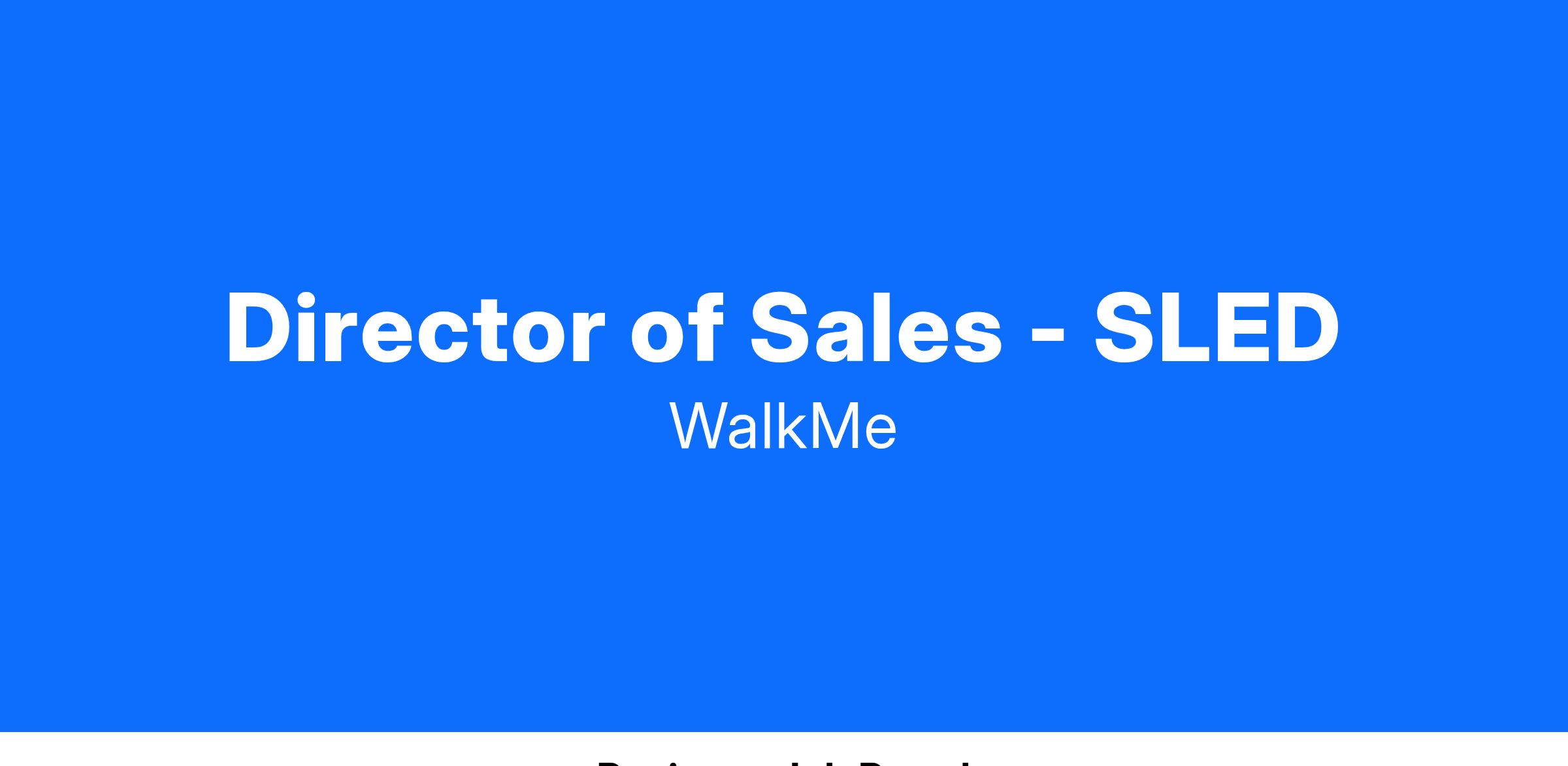 You will be responsible for building out the SLED GTM team from the ground up to help WalkMe capitalize on the enormous market opportunity in Public Sector.
