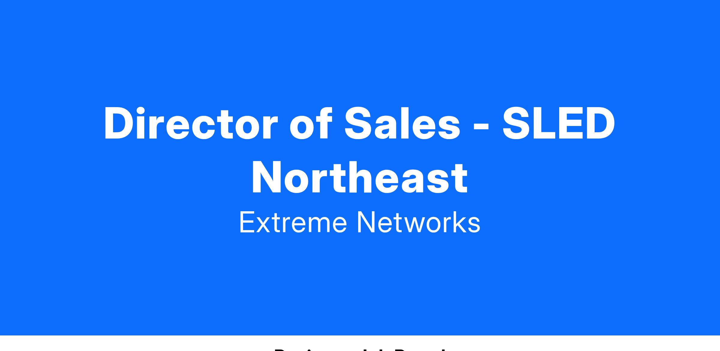 The Director of SLED Sales in the Northeast will report to the Vice President SLED Sales US & Canada. The Regional Sales Director is responsible for working across the region to define key sales opportunities and managing a high performing sales team.