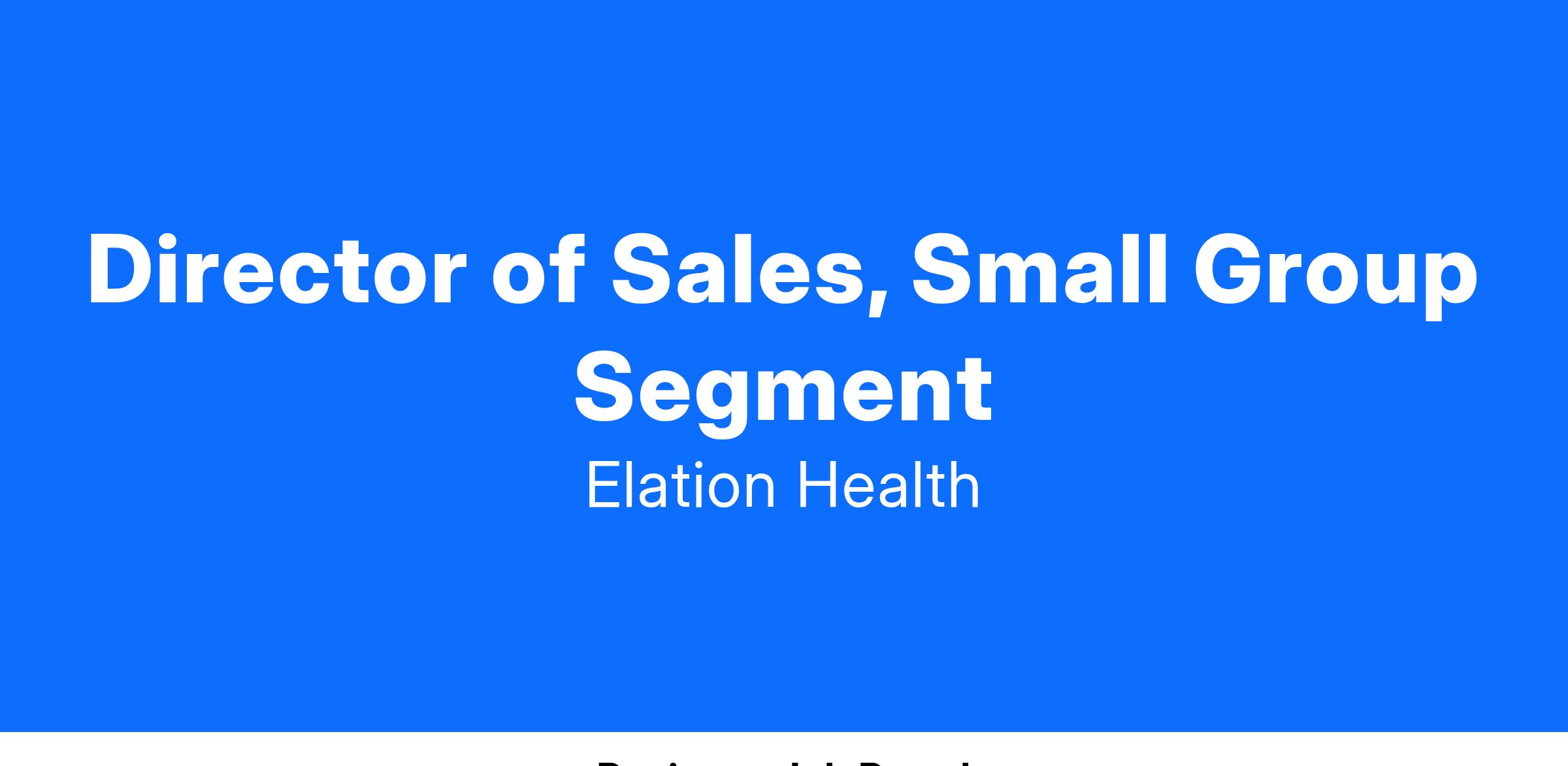 Elation Health, a forefront innovator in health information technology solutions, seeks a driven and experienced Sr. Manager/ Director of Sales for our Small Group Segment. This remote leadership role involves leading a team of Account Executives, adept in both inbound and outbound sales strategies, focusing on expanding our market share within the small group sector. The successful candidate will lead and manage a high performing team while operating in a dynamic, virtual environment.
