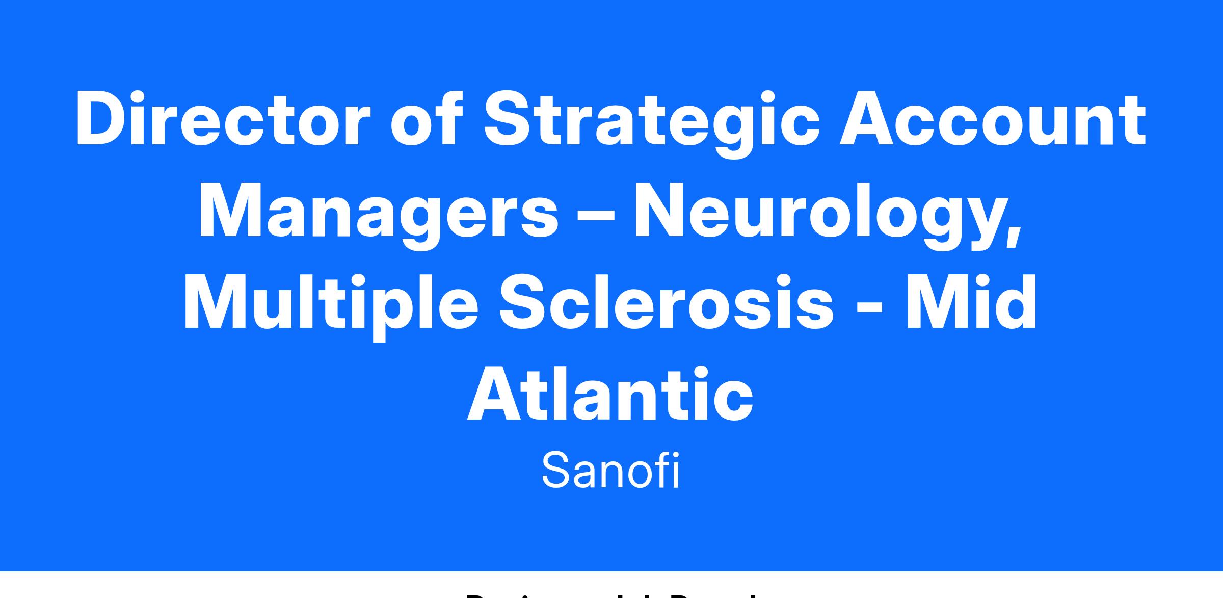 Job title: Director of Strategic Account Managers – Neurology, Multiple Sclerosis - Mid Atlantic