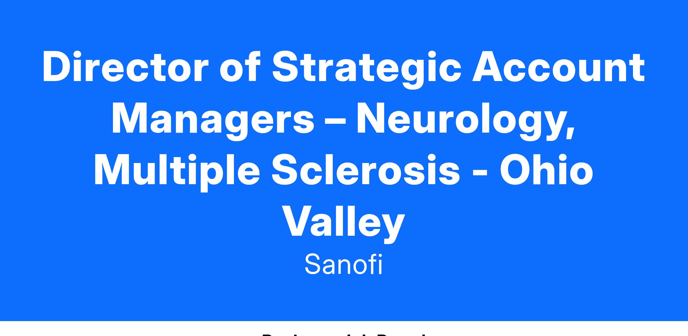 Job title:Director of Strategic Account Managers – Neurology, Multiple Sclerosis - Ohio Valley