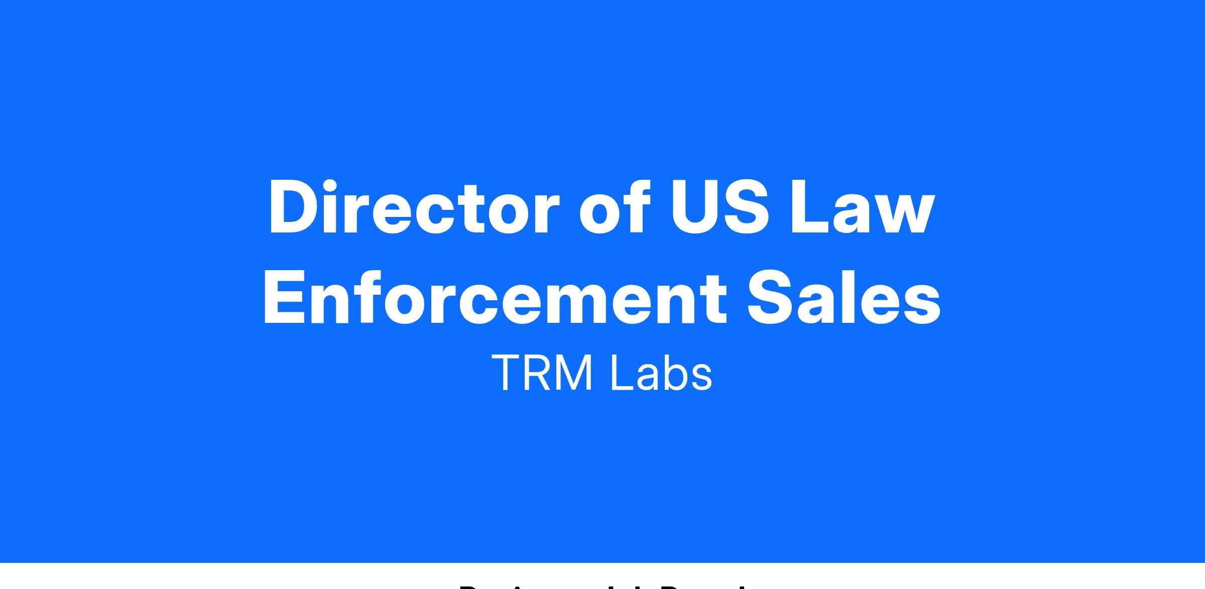 We’re seeking a Director of US Law Enforcement Sales to craft and execute a strategy that drives adoption and builds mindshare for TRM Labs' products within federal law enforcement agencies. As a dynamic leader with deep experience in agencies like the FBI, USSS, and DEA, you excel at the nexus of strategy, relationship management, and execution. In this fast-paced, high-growth environment, you will play a pivotal role in achieving TRM’s revenue goals, delivering innovative solutions, and empowering our customers to safeguard the global financial system.