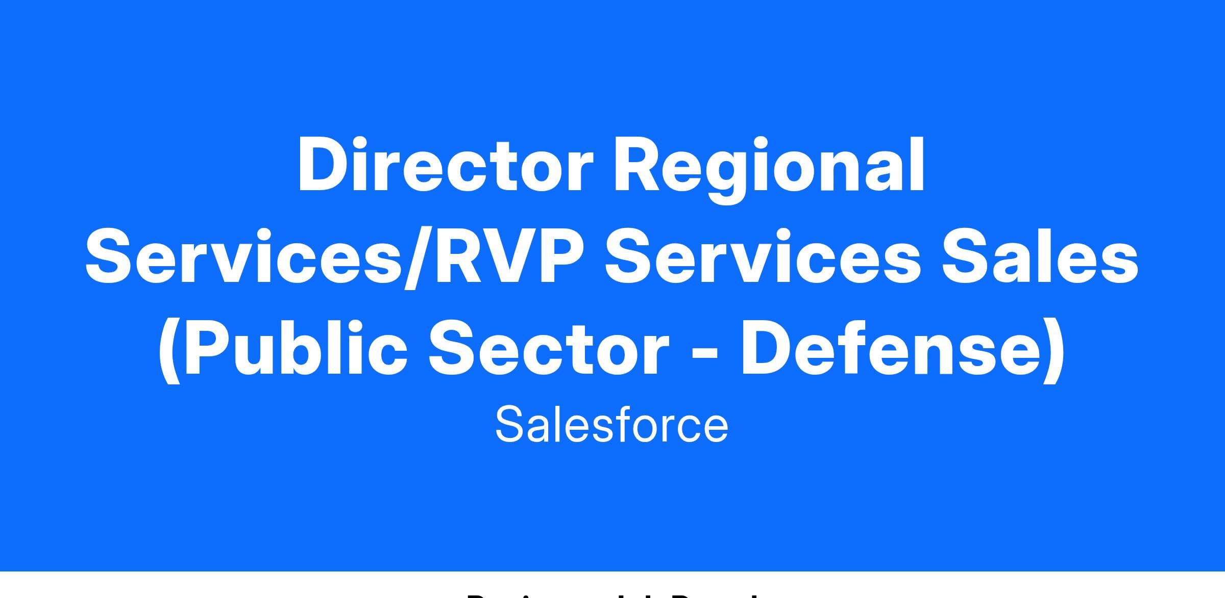 We are currently seeking Director Regional Services/RVP Services Sales to join our growing Professional Services sales team within Customer Success Group (CSG). Our Account Partners act as trusted advisors to our customers by providing execution excellence, demonstrating intimate knowledge of their business, and defining a roadmap towards success. Their primary goal is to help customers generate significant business value from their Salesforce investment.