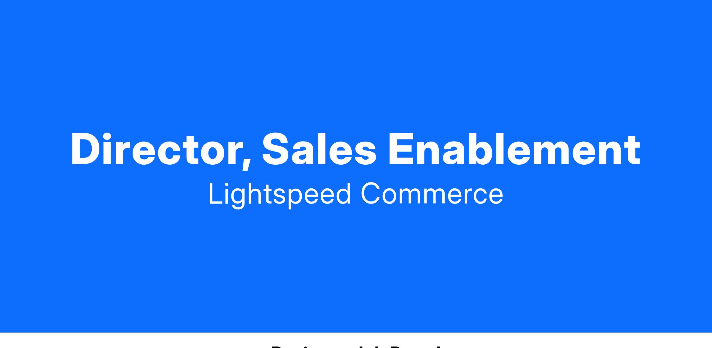 Team Leadership: Build and lead a world-class Enablement Team within Lightspeed focused on delivering impactful training and enablement solutions. Foster a culture of continuous learning and development, ensuring the team delivers content that enhances performance and productivity.
