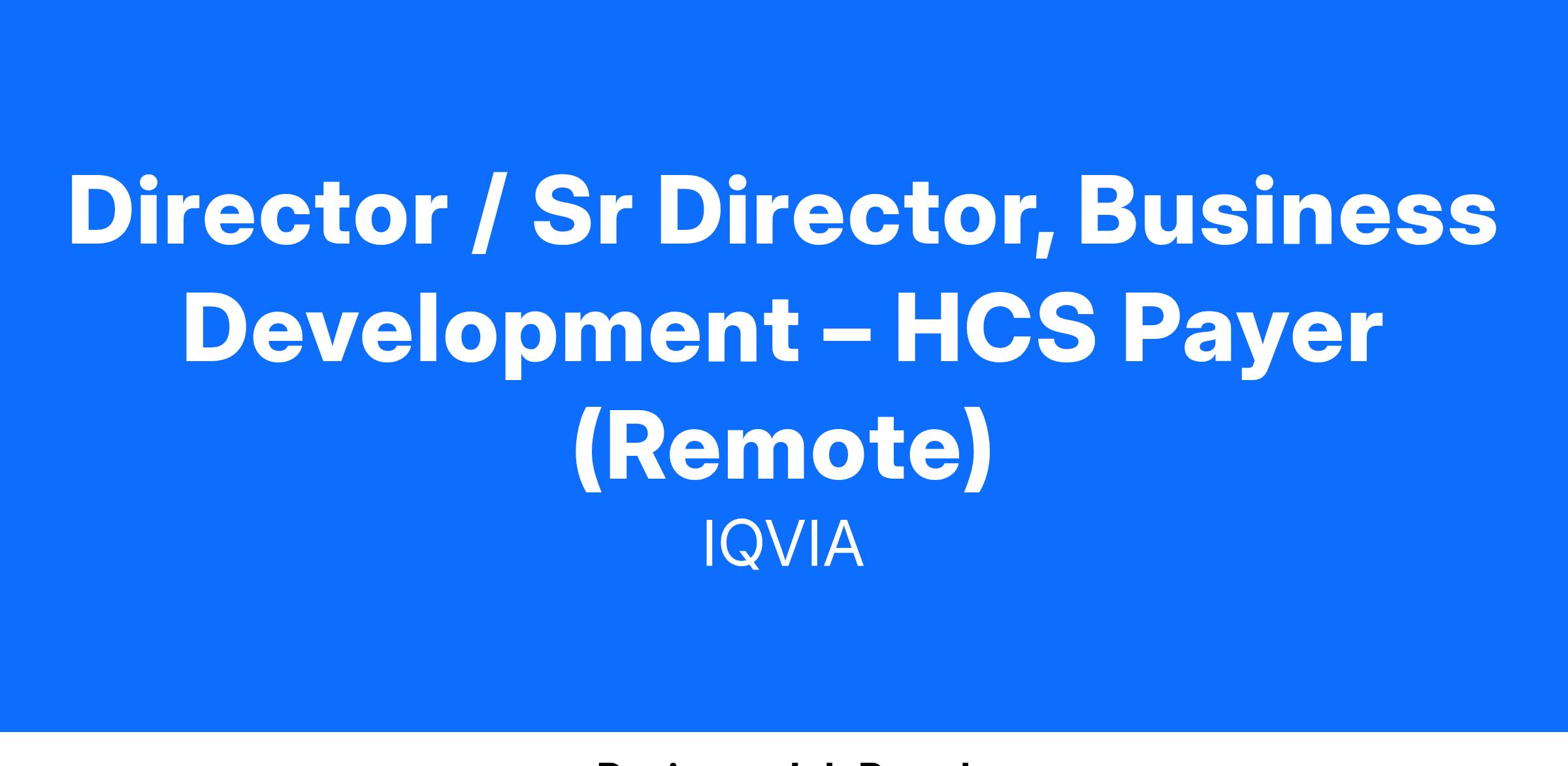 IQVIA’s Healthcare Payer team is currently seeking a seasoned and entrepreneurial-spirited sales/business development executive who can effectively position a portfolio of data solutions, technology, and strategic services for both regional and national healthcare payer clients.