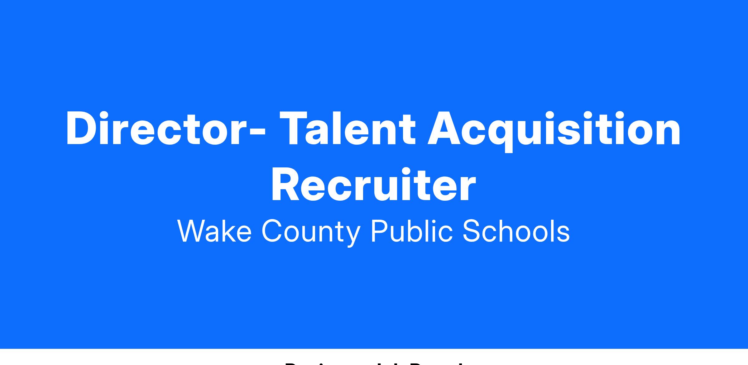 A visionary leader that will create, lead, and execute a plan to attract and recruit optimal staff for the district. Oversees the overall performance of the Recruitment team and ensures that goals and metrics are in place to track their work. Gathers and analyzes data to maintain and implement a system-wide recruitment and retention plan that aligns with the Wake County Public School System’s (WCPSS) strategic plan. Successfully manages multiple projects and deadlines in a fast-paced environment.