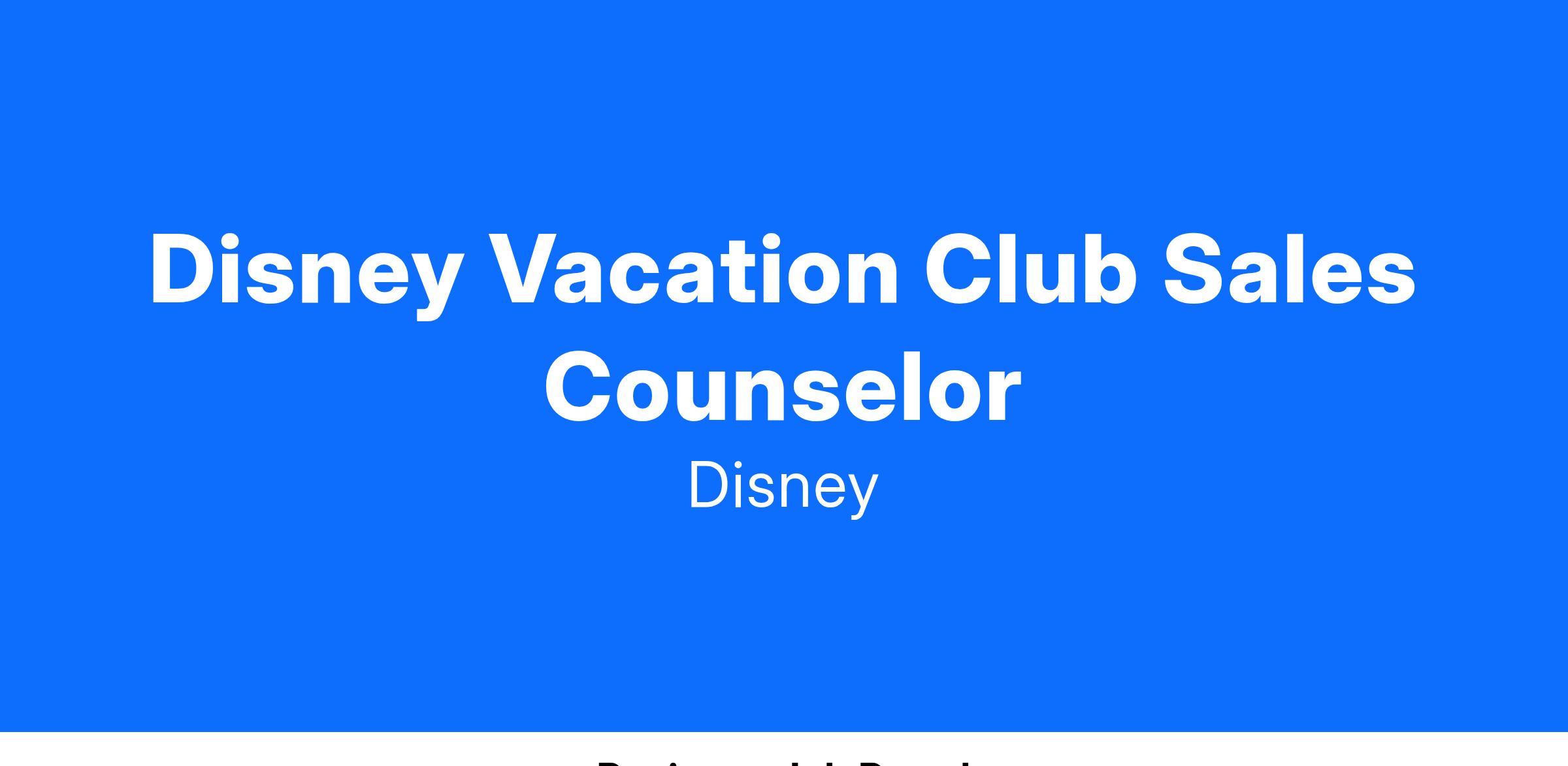 Disney Vacation Club Sales CounselorReq ID: