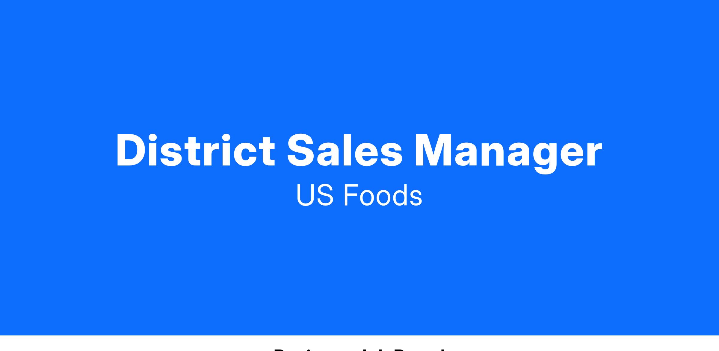 Related Experience: A minimum of five years of foodservice sales experience required. A minimum of two years of supervisory experience required. Overnight travel may be required to participate in trainings, meetings, or other company events.