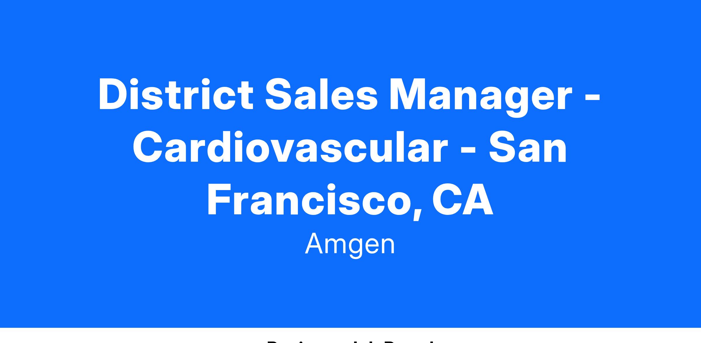 Amgen's medicines treat serious illnesses and our research address diseases with a limited number of treatment options. With a robust and differentiated pipeline, Amgen remains committed to advancing science to dramatically improve people's lives. As a values-based organization with a powerful sense of shared purpose toward our mission: to serve patients, we are actively searching for a District Sales Manager to deliver on this commitment to patients.