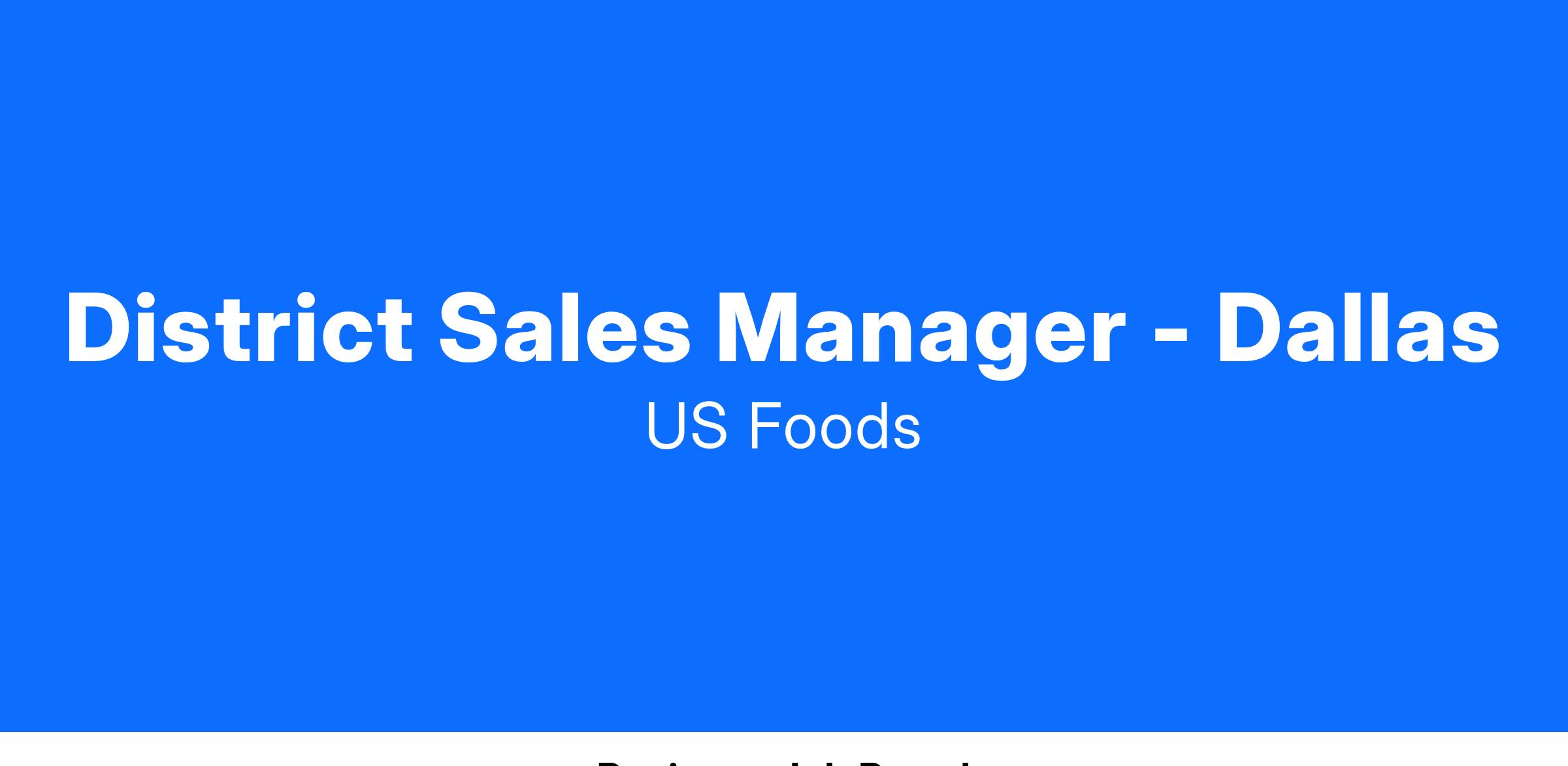 Related Experience: A minimum of five years of foodservice sales experience required. A minimum of two years of supervisory experience required. Overnight travel may be required to participate in trainings, meetings, or other company events.