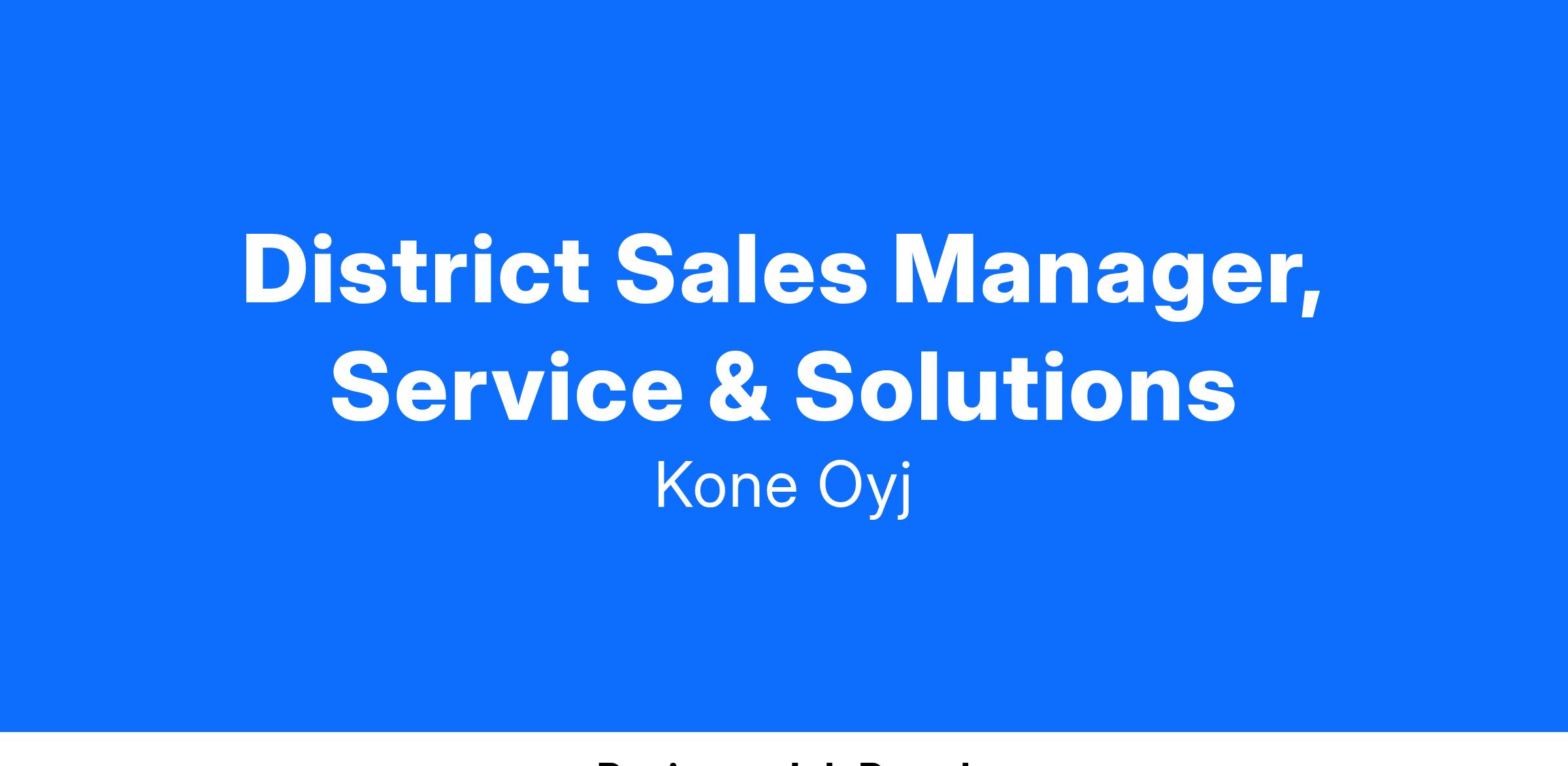 We are looking for a District Service Sales Manager for our Northeast District, who would be responsible for the development of our service business sales and would drive an outside-in customer service mindset to meet our customers’ needs. You will ensure the profitable growth of the business and reinforce KONE’s solution selling methodology / drive implementation of KONE sales initiatives.