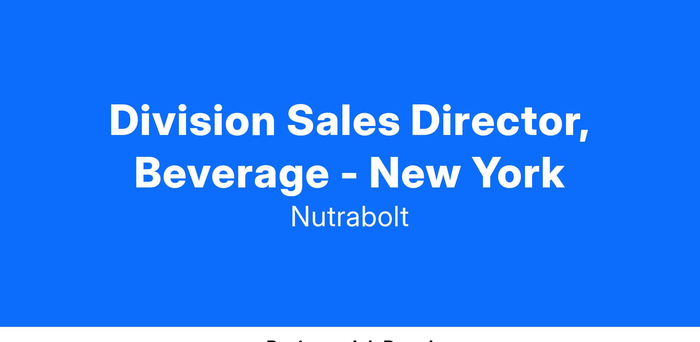 Who You Are: As the Division Sales Director, Beverage you will oversee and manage relations between Nutrabolt and DSD Distributor Partners, provide direction to our field sales force, and work alongside our NRS team to drive execution at retail. You will report to the VP of Beverage Distribution and will be responsible for giving feedback on, and ultimately carrying out, the tactical strategies laid out by the executive team. This position requires 60% travel as you will be responsible for aligning with our Distributor Partners, assessing market conditions, and driving performance.