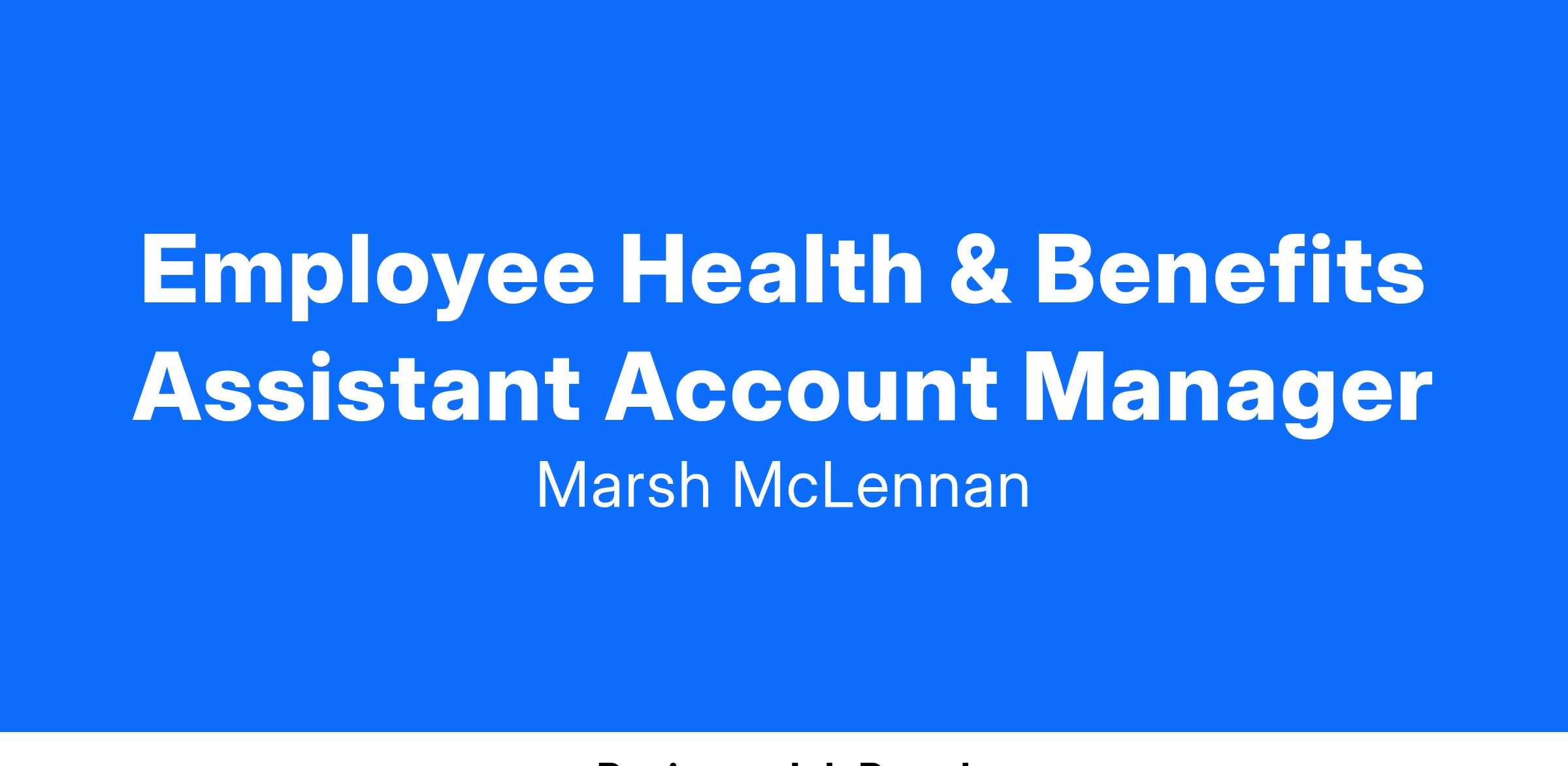 Award-winning, inclusive, Top Workplace culture doesn’t happen overnight. It’s a result of hard work by extraordinary people. More than 11,000 of the industry’s brightest talent drive our efforts to deliver purposeful work and meaningful impact every day. Learn more about what makes us different and how you can thrive as a Employee Health & Benefits Assistant Account Manager at Marsh McLennan Agency (MMA).