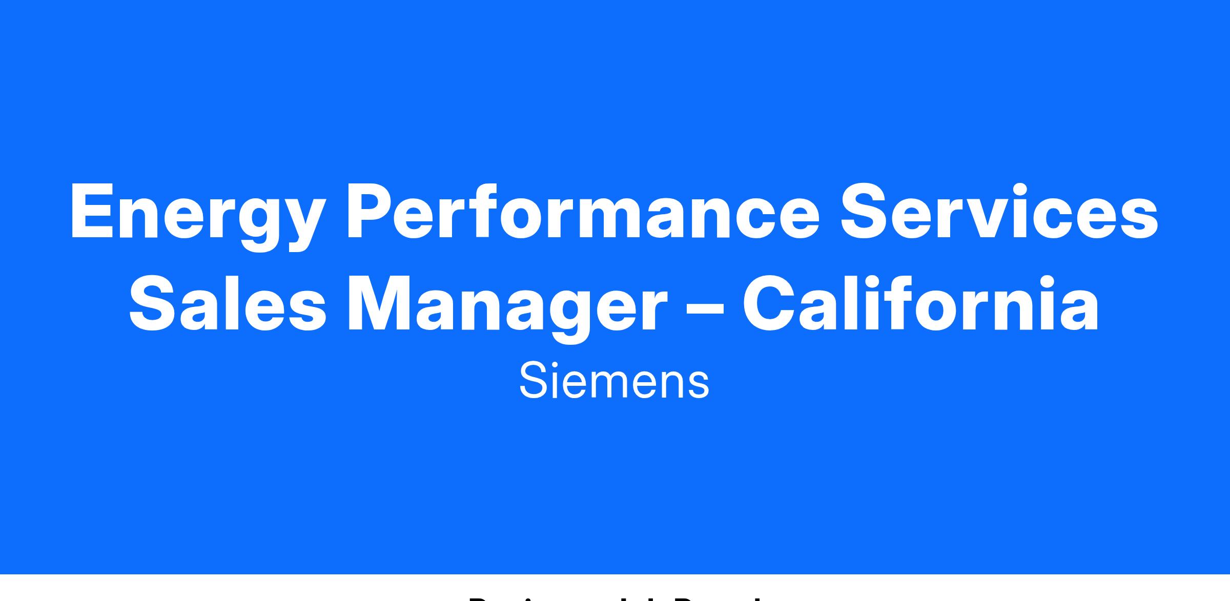 Energy Performance Services Sales Manager – California